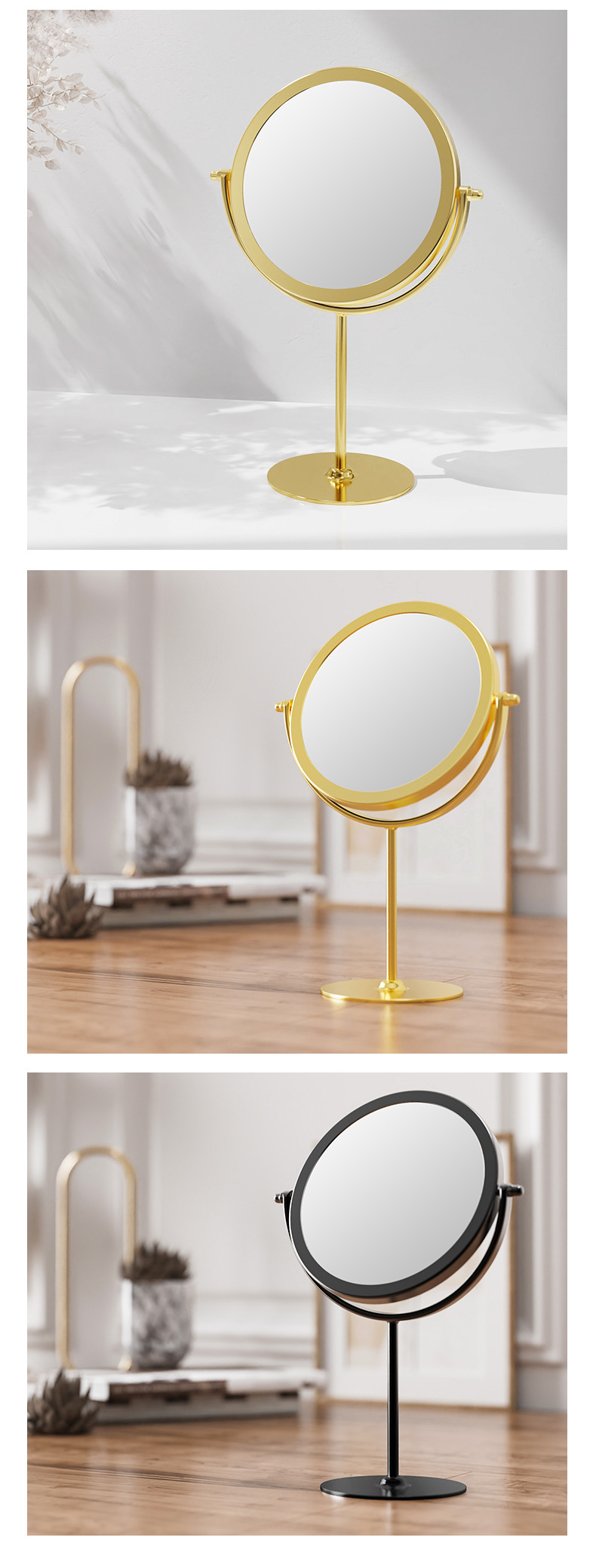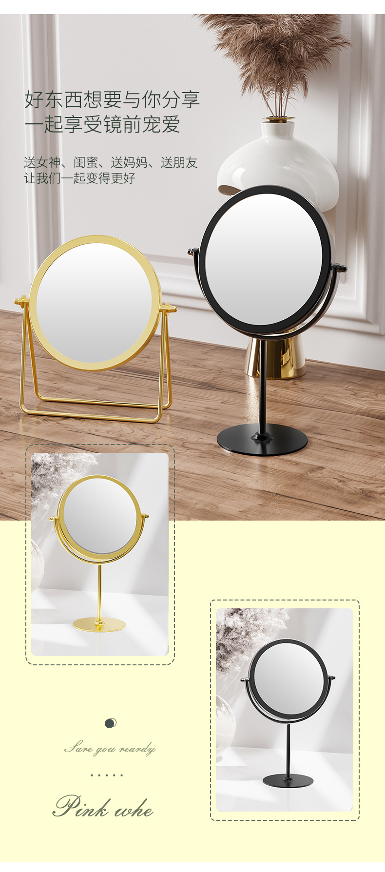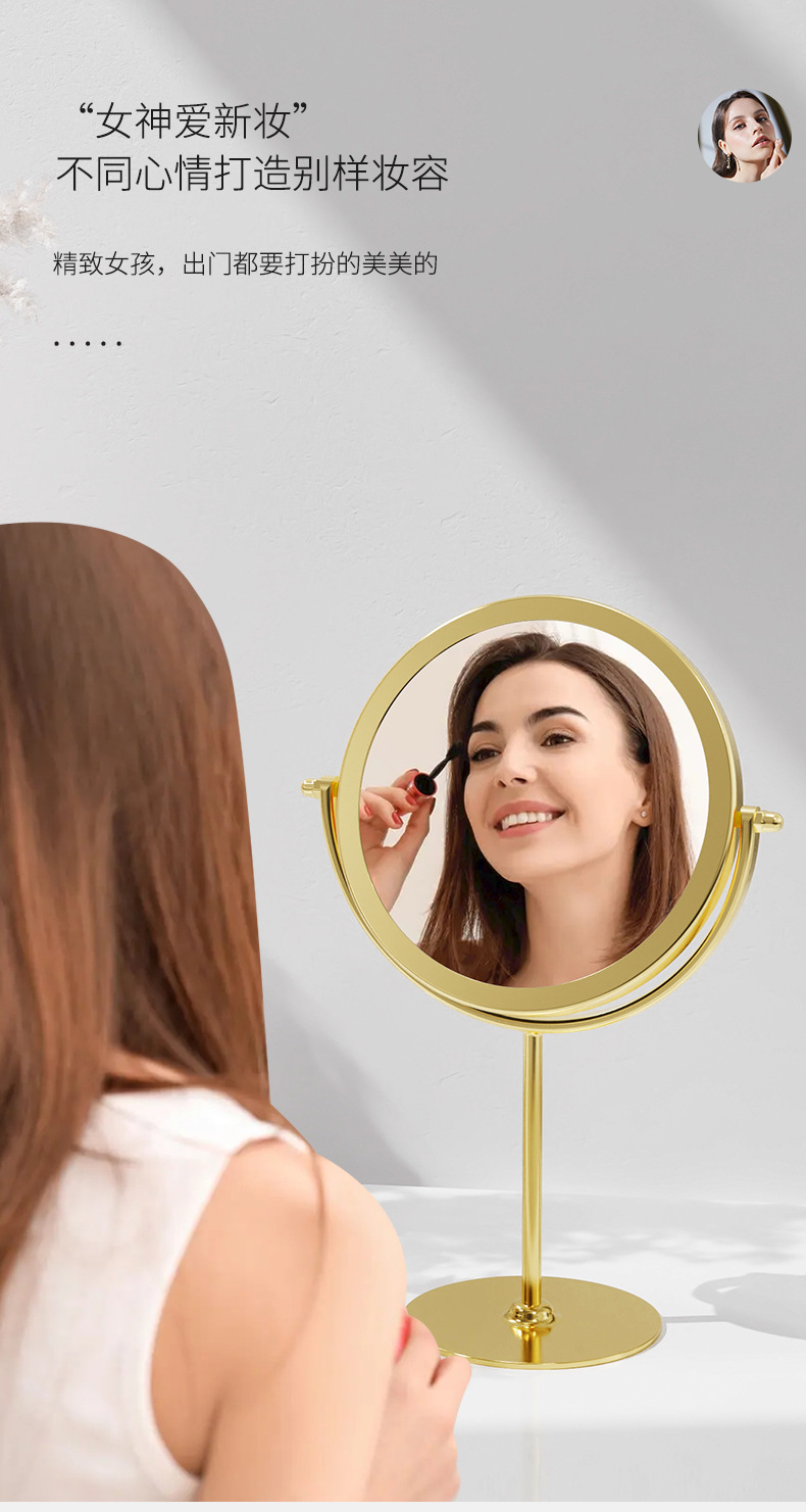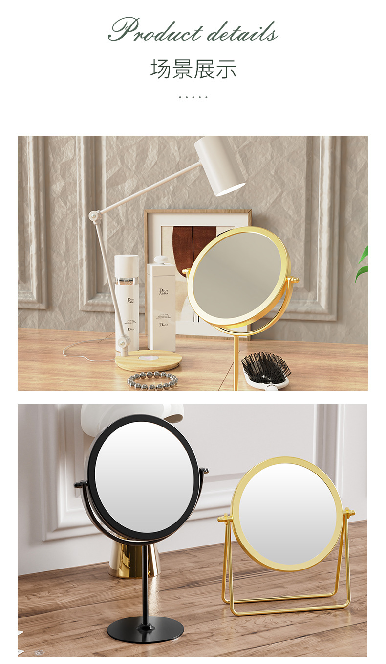 网红款铁艺镜子高颜值台式单面可旋转梳妆镜学生宿舍女桌面化妆镜