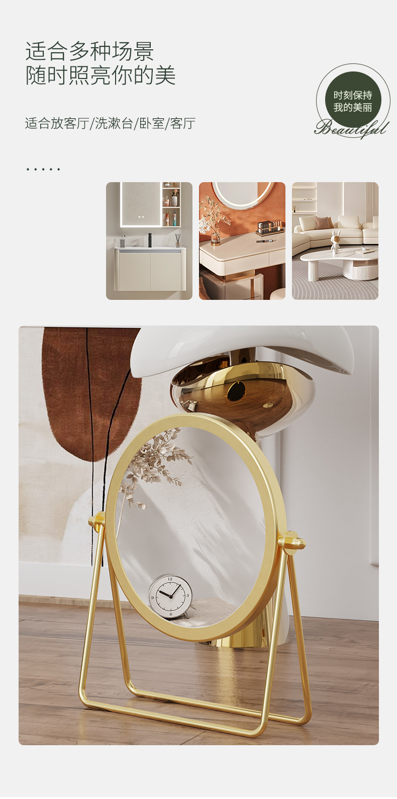 見栄えの良いインスタイルミラー、化粧鏡、家庭用卓上スタンドメタルテーブルミラー、卓上寮用化粧鏡