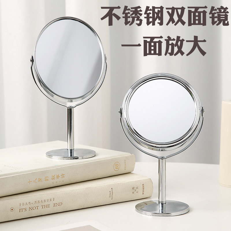 金属不锈钢双面台式桌面化妆镜办公室超高清放大立式梳妆镜化妆镜