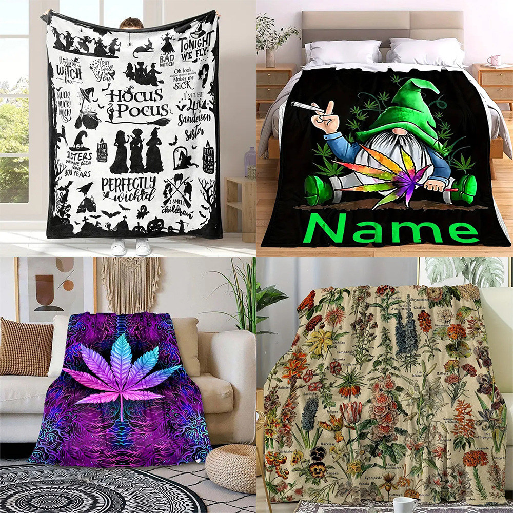 跨境法兰绒数码印花毛毯植物款小盖毯亚马逊午休盖毯沙发空调毯子