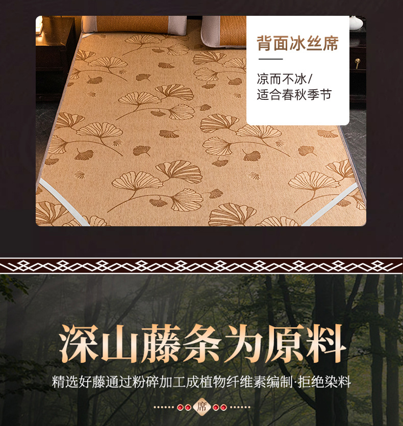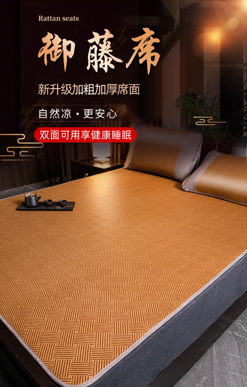 両面凉席藤席折り畳み可能夏竹席畳天然純藤マットレス2024新型氷糸ソフト畳