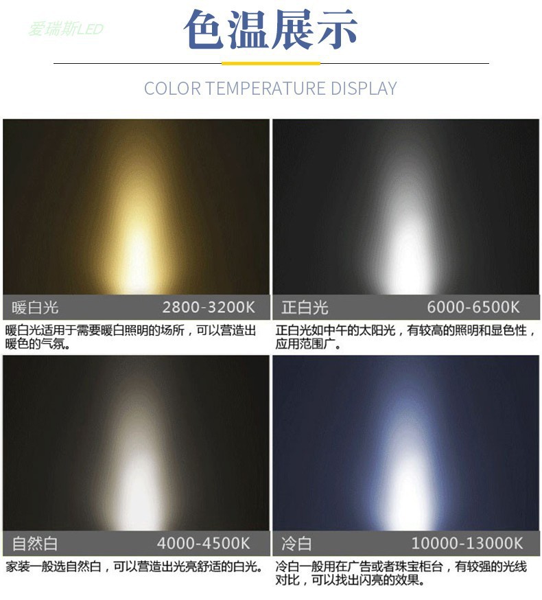 色温度 冷白色光 (11000K-13000k),白色光(6000K),ニュートラルライト (4000K),暖かい光 (3000K)