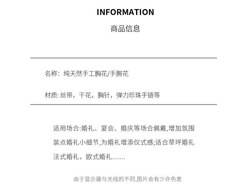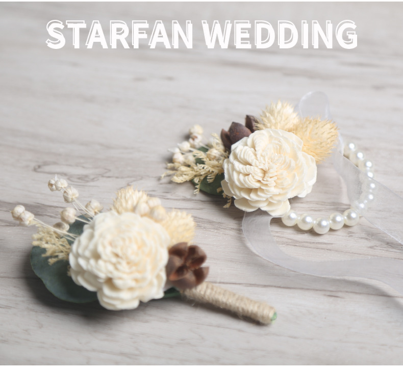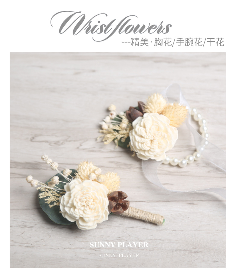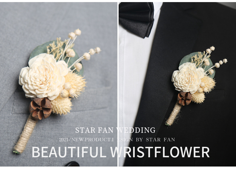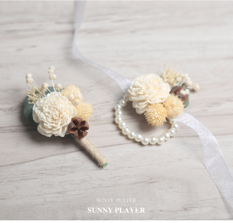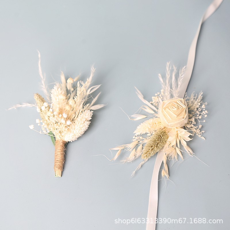 結婚式新郎新婦胸花結婚パーティー永生花ドライフラワー手首花ウェディング用品ゲストフラップ