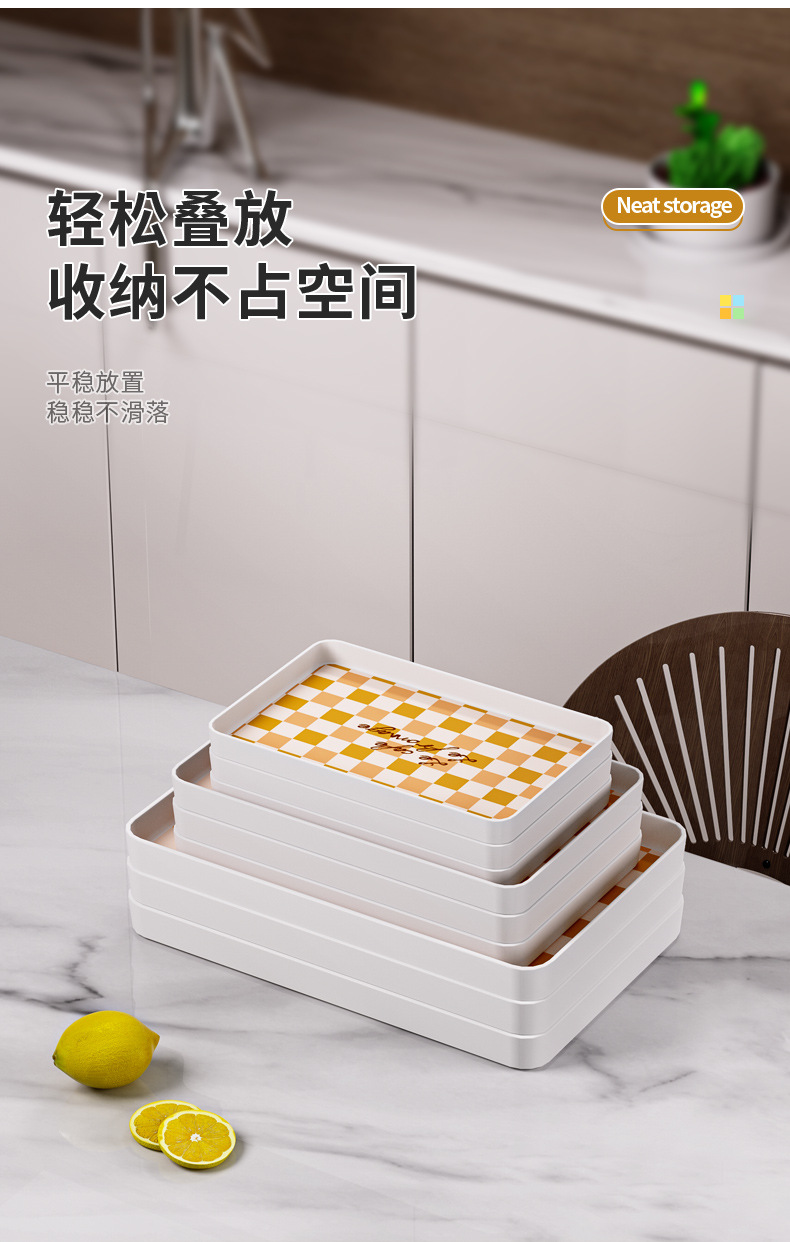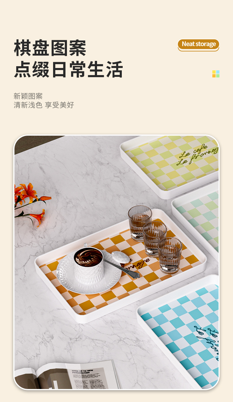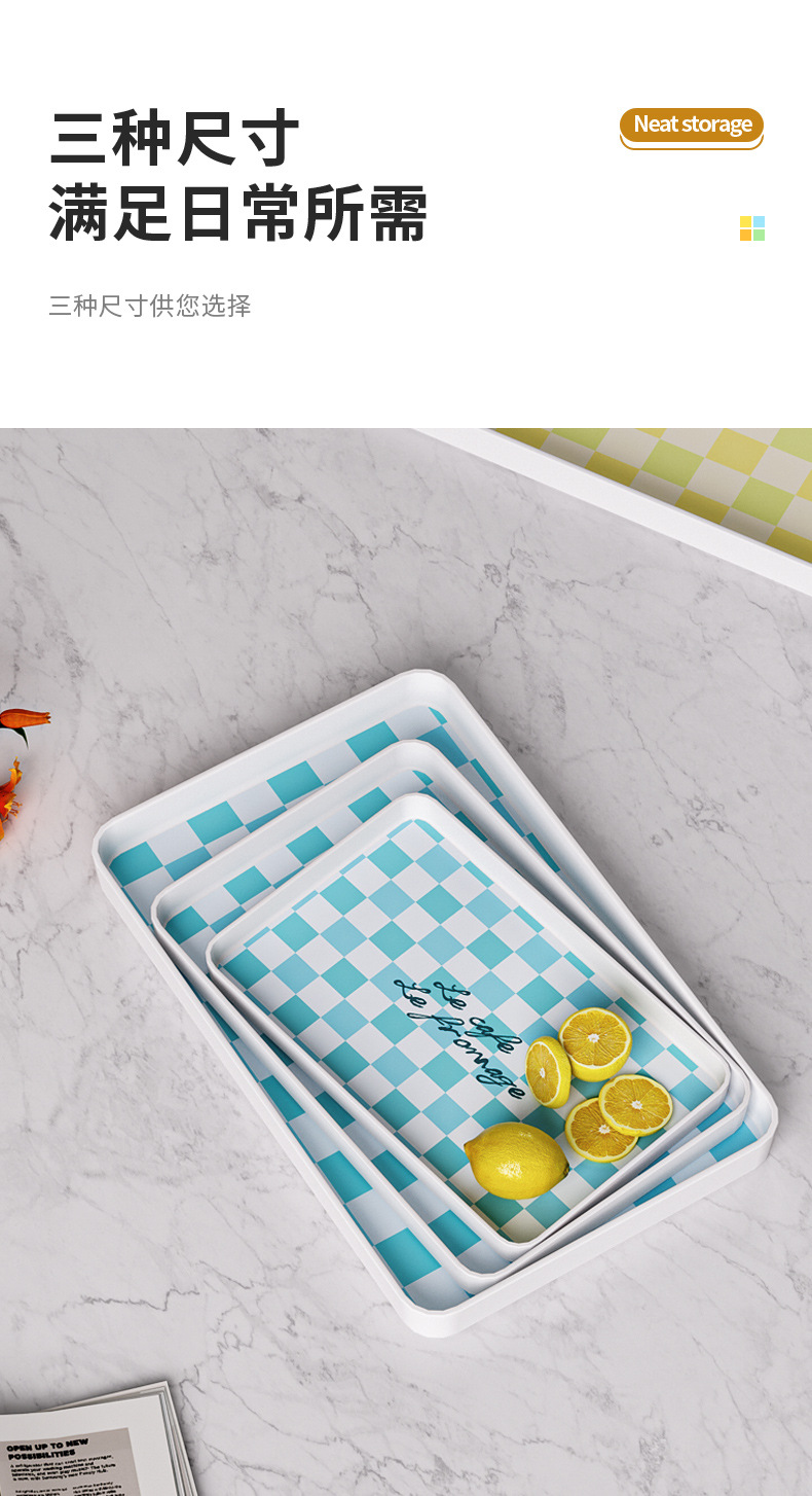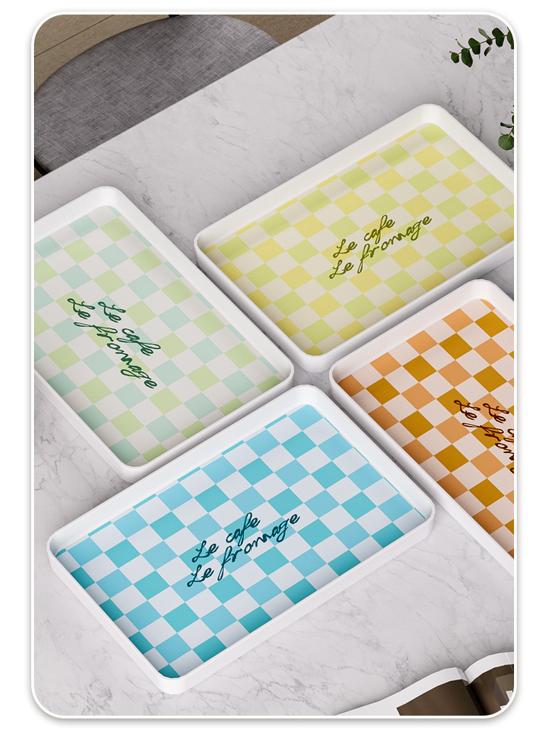 チェッカートレイ茶皿軽豪華デザート皿高颜値メラミン長方形ins風家庭用デスクトップ収納