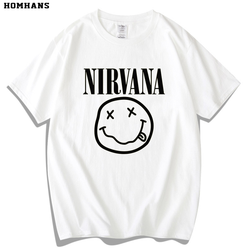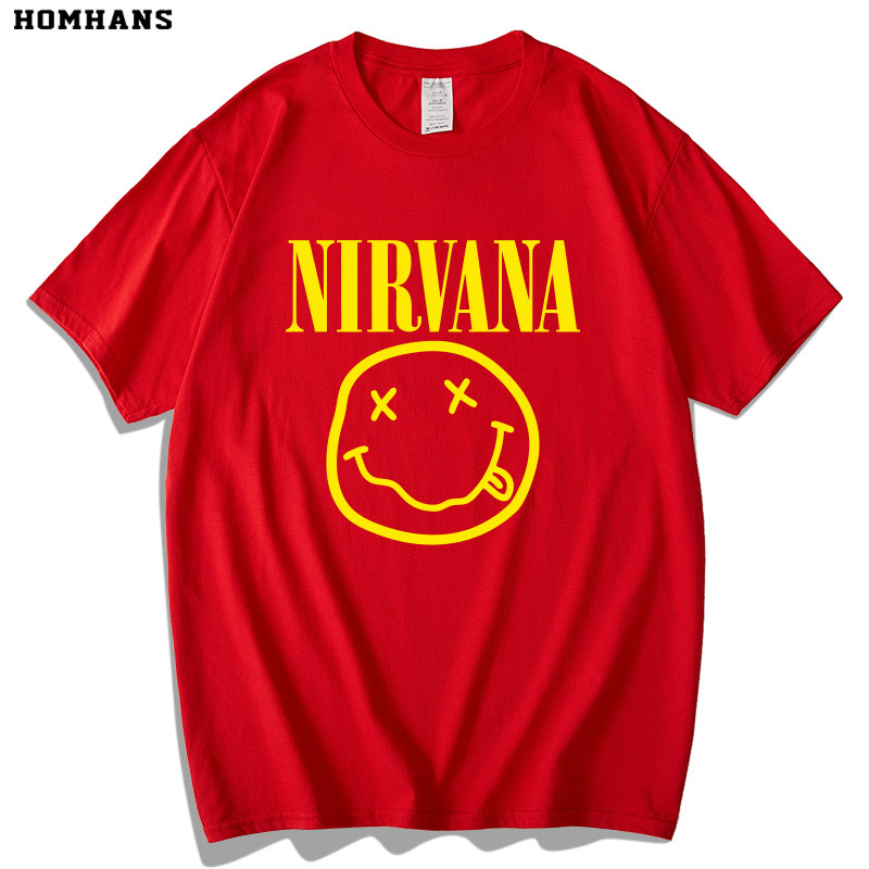 赤韓Nirvana涅盤バンド欧米金属ロック半袖男性笑顔tシャツ女性ゆるい大きいサイズ