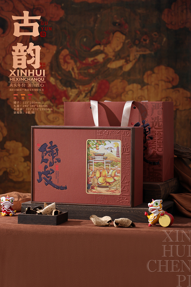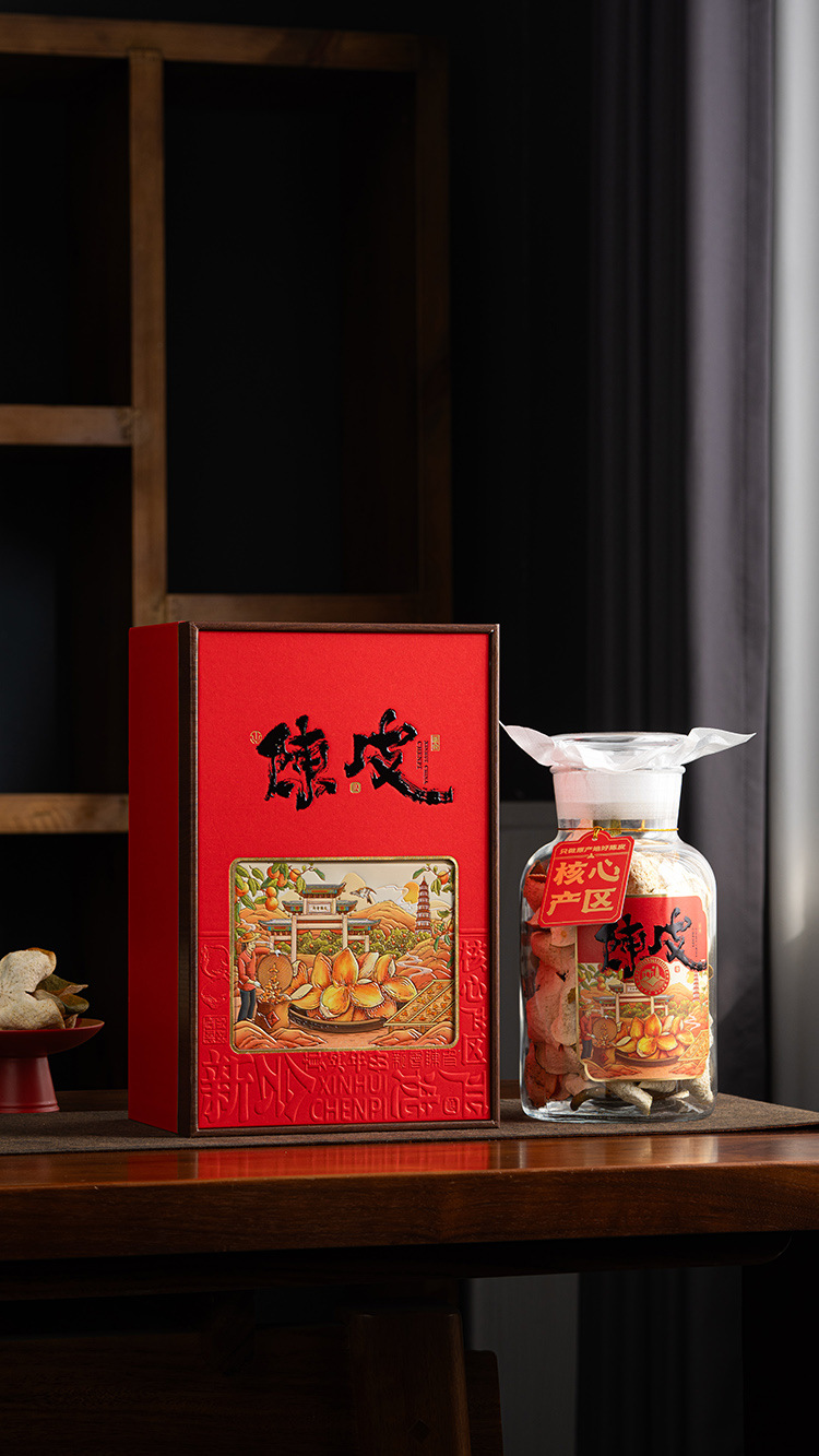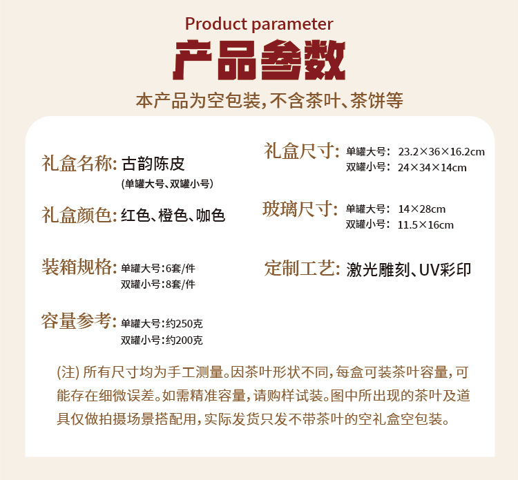 茶葉包装 道地新会陳皮 高級ギフトボックス 空箱 シングルガラス 半斤容量 密封 ロゴ入り品名