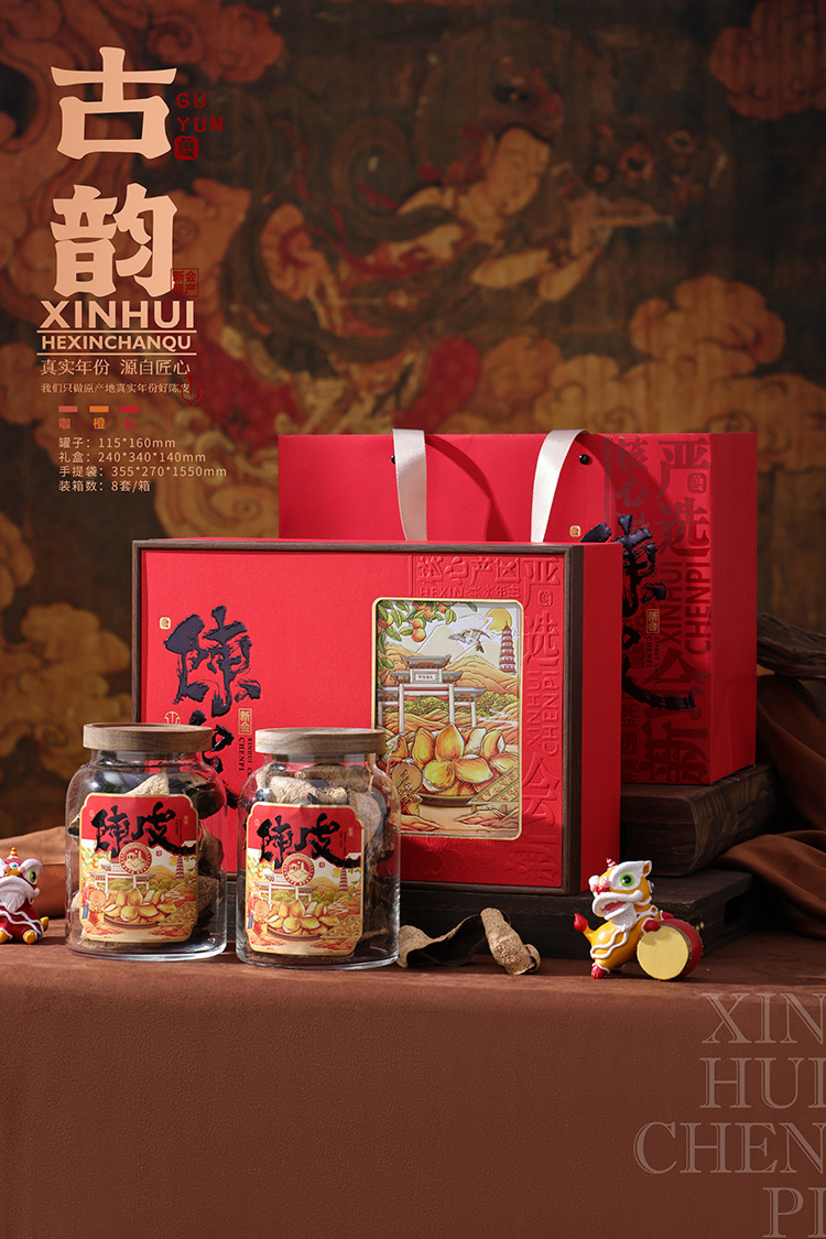 茶葉包装古韻2025項新会陳皮双ガラス瓶密封缶200グラム礼箱空箱ハイエンド