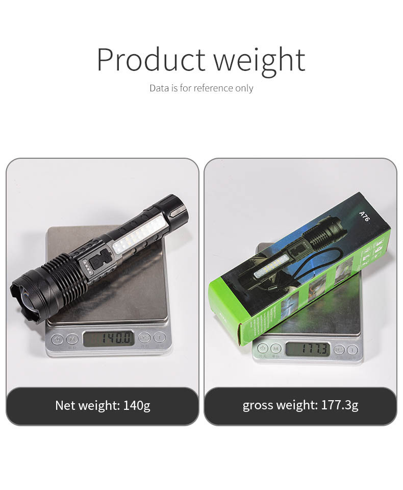 跨境多功能强光手电筒数字电显变焦应急电筒户外充电远射便携手电