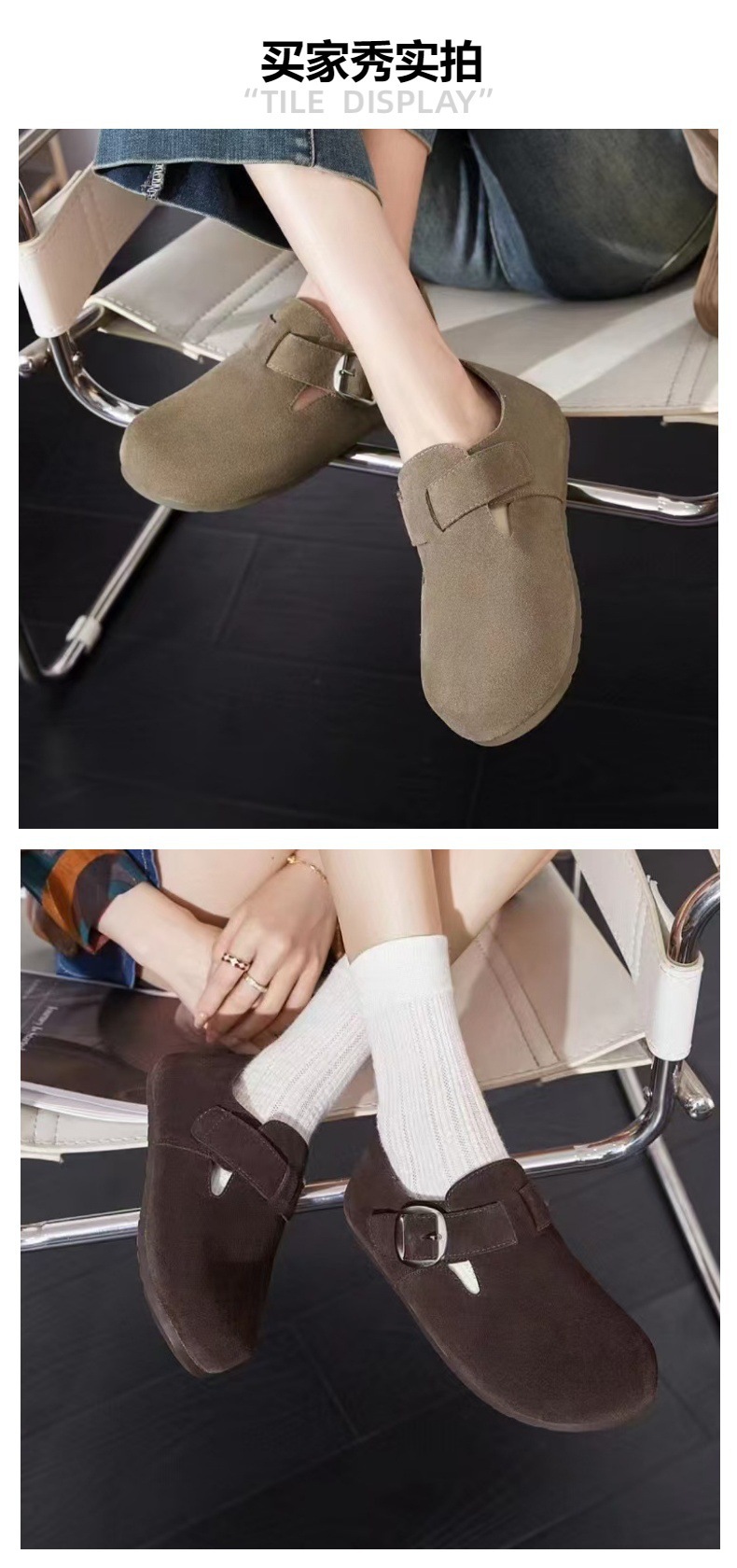 TEEMAZZ全包勃肯鞋软木底内增高休闲单鞋2025真皮拼接绒面博肯鞋