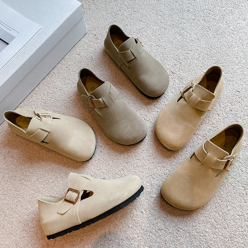 桑坂ブランケン靴女2024春秋コルク一足怠け者靴包頭真皮厚い底全包博ケン単靴