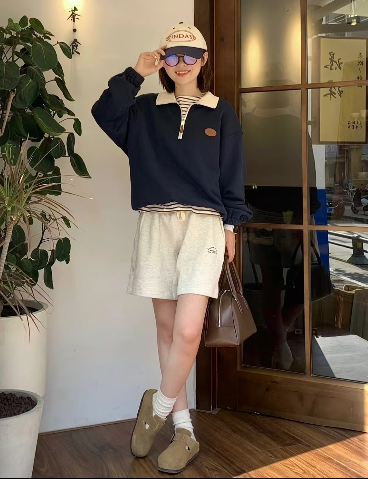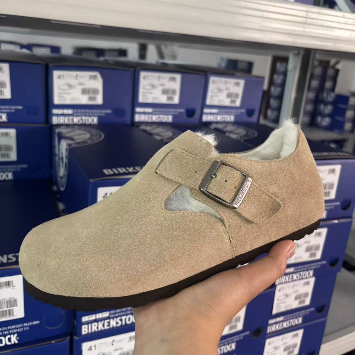 桑坡真皮勃肯鞋加绒全包勃肯鞋女冬款2025新款一脚蹬复古毛毛绒鞋