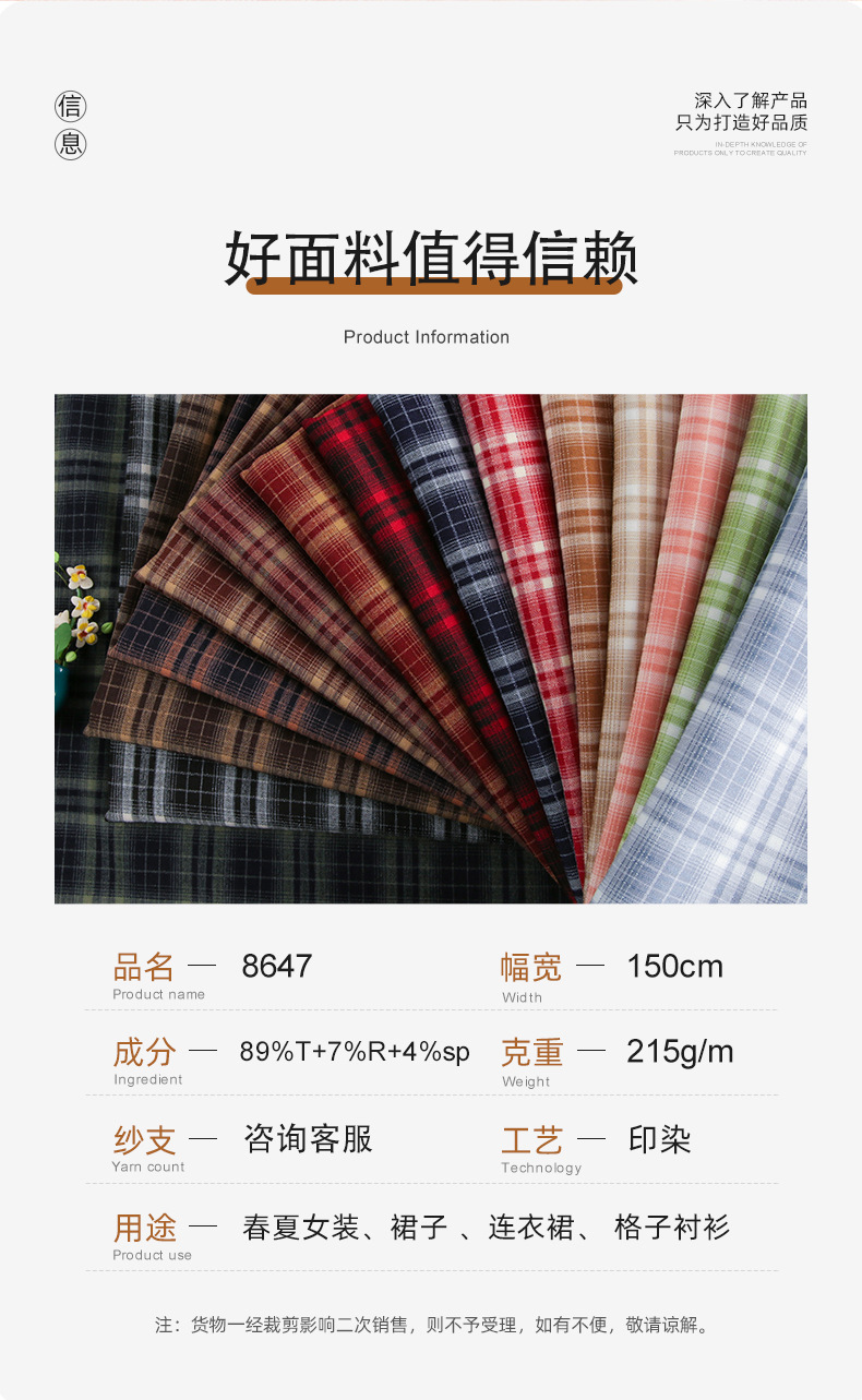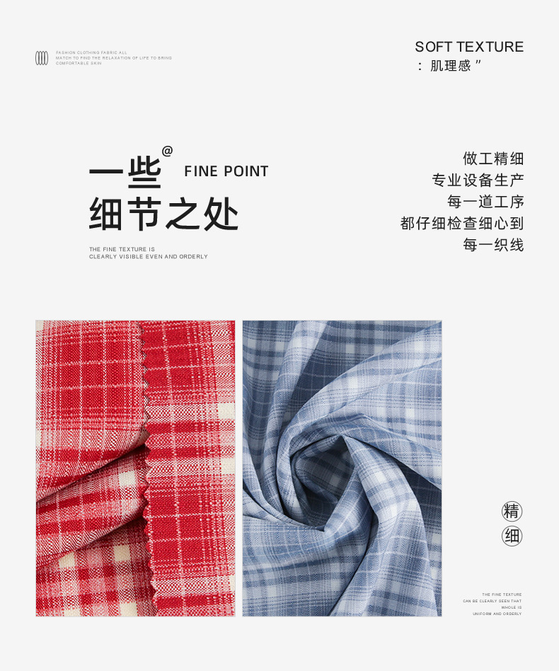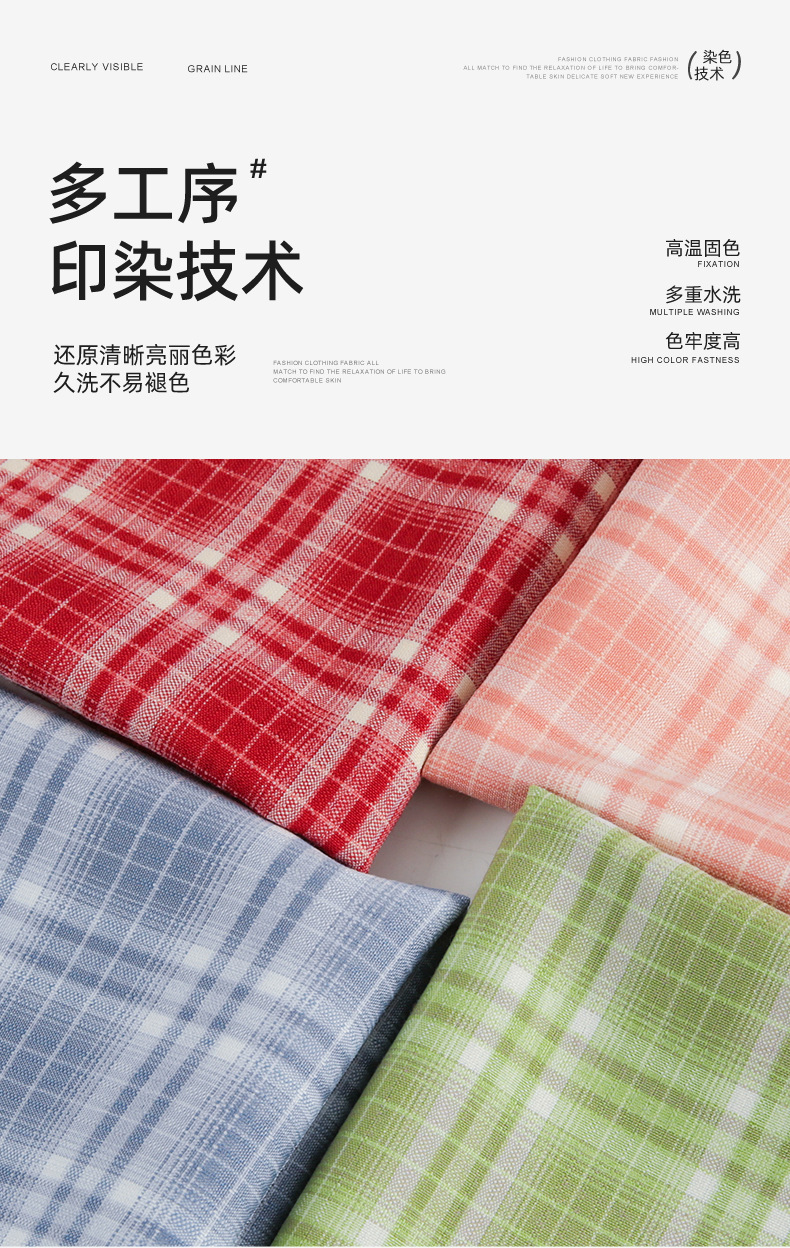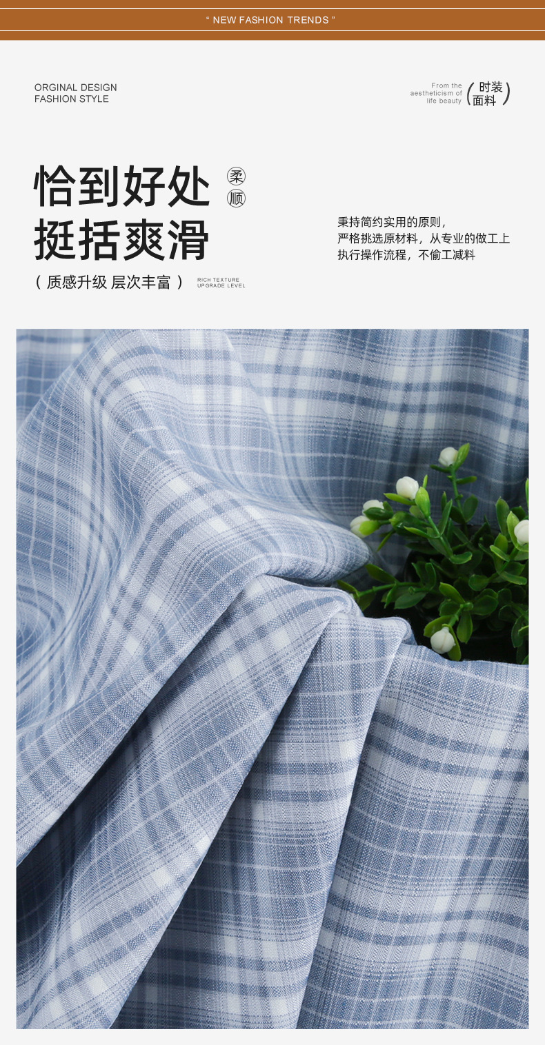 春夏新款梭织TR格子时尚女装JK裙裤衬衫童装面料现货批发定制