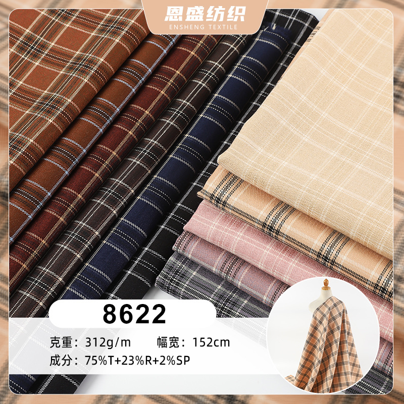 現物TR磨毛格子布コート風衣ズボンバッグポリエステル混紡格子生地卸売り