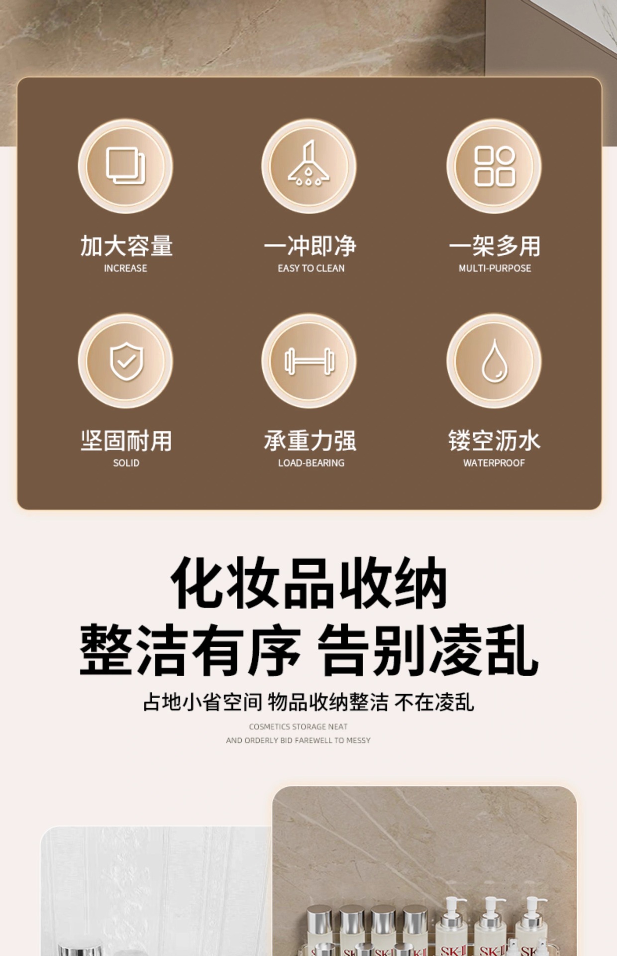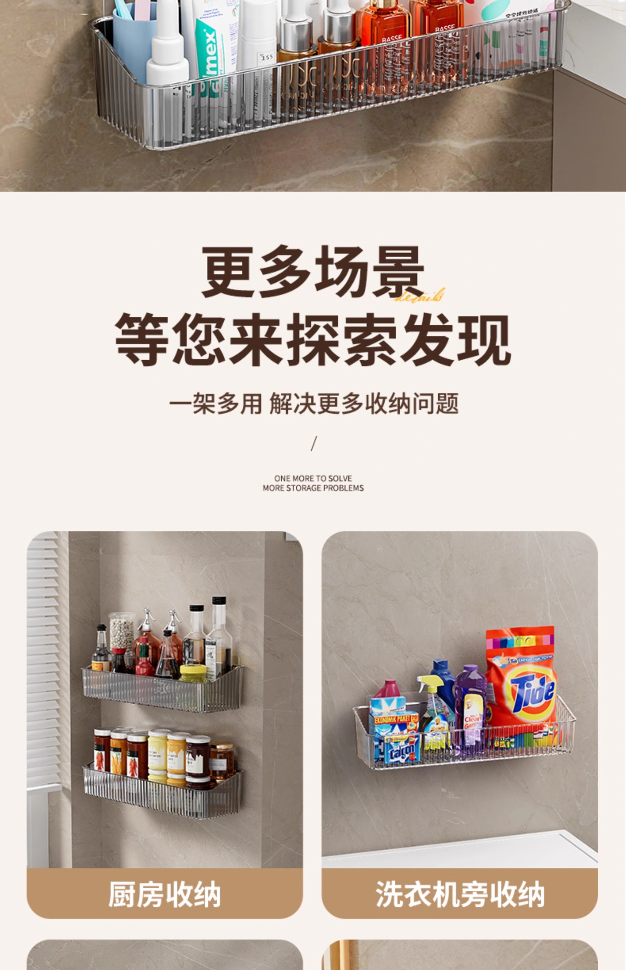 卫生间置物架浴室厕所打孔壁挂洗手间洗漱墙上化妆品沐浴露收纳架