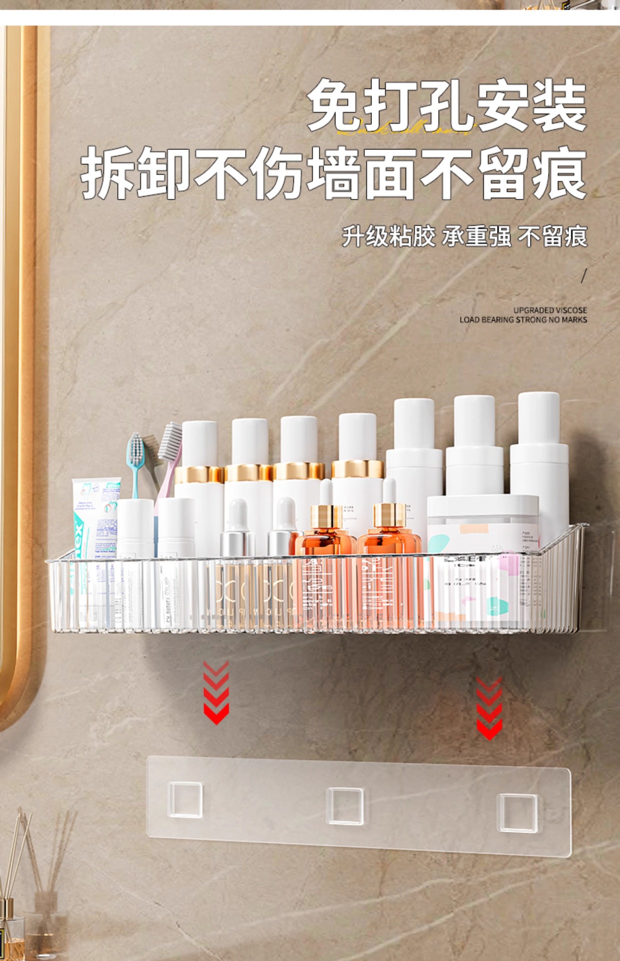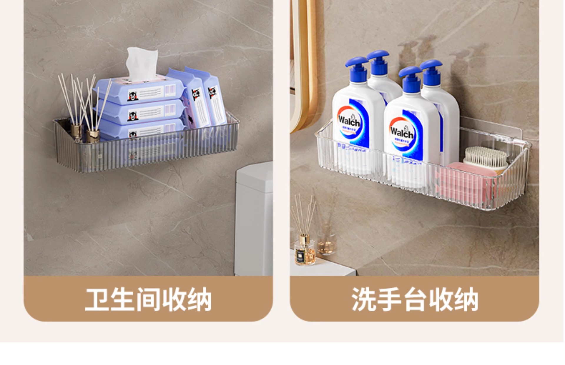 卫生间免打孔置物架墙上浴室厕所洗手间厨房壁挂架化妆品收纳架子