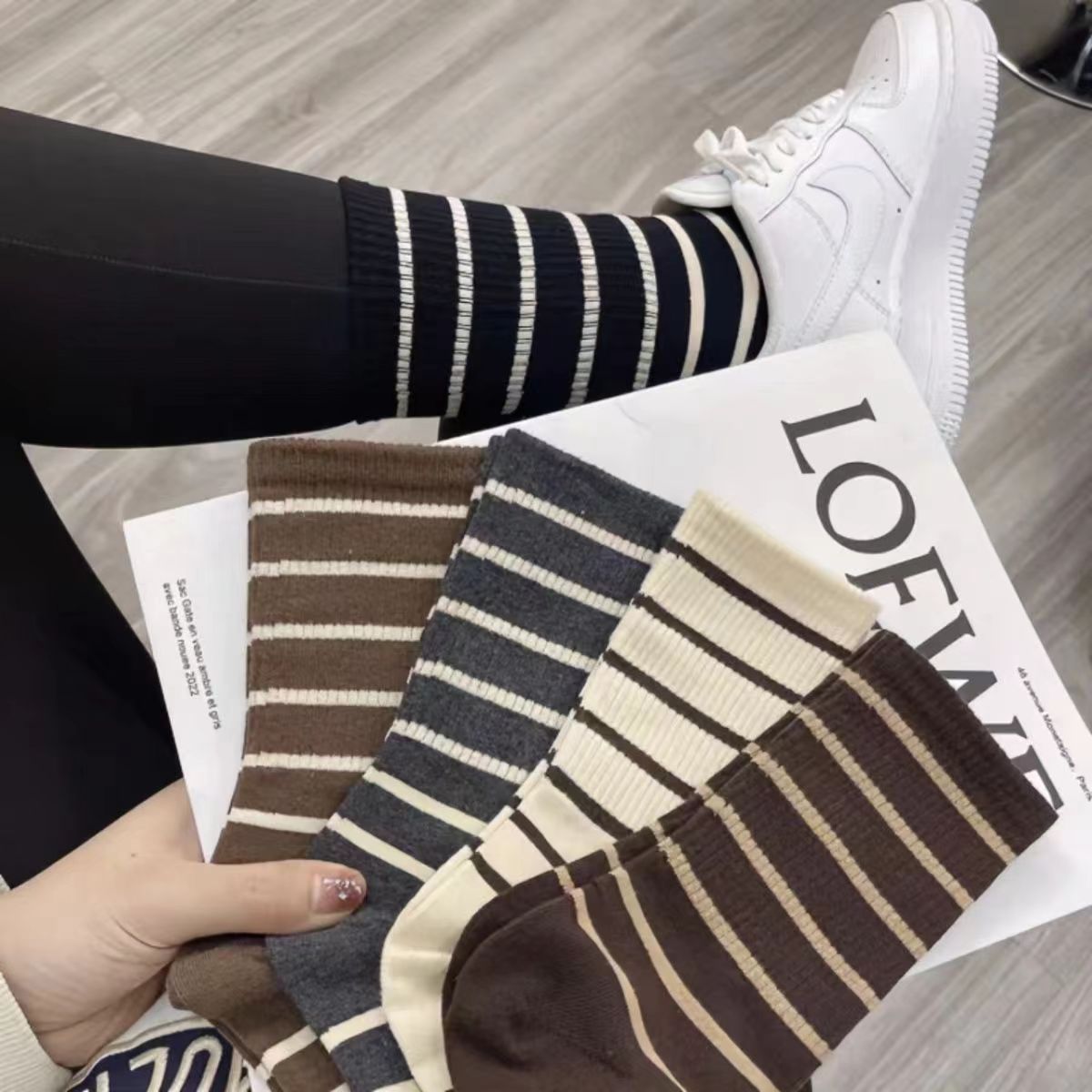 ストライプの森系の靴下の女性の秋冬の中筒の靴下のinsの潮のかわいい運動の韓学院の風のストッキングの百合の諸及び