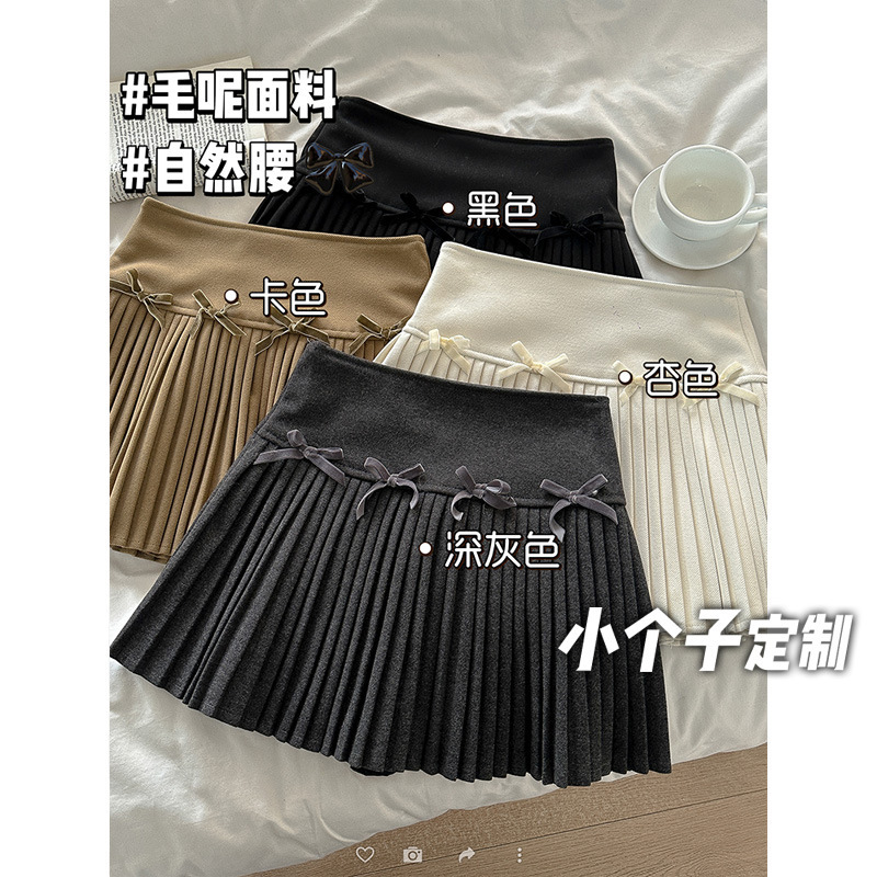150小矮个子设计感蝴蝶结拼接呢子半身裙女冬防走光高腰百褶a字裙