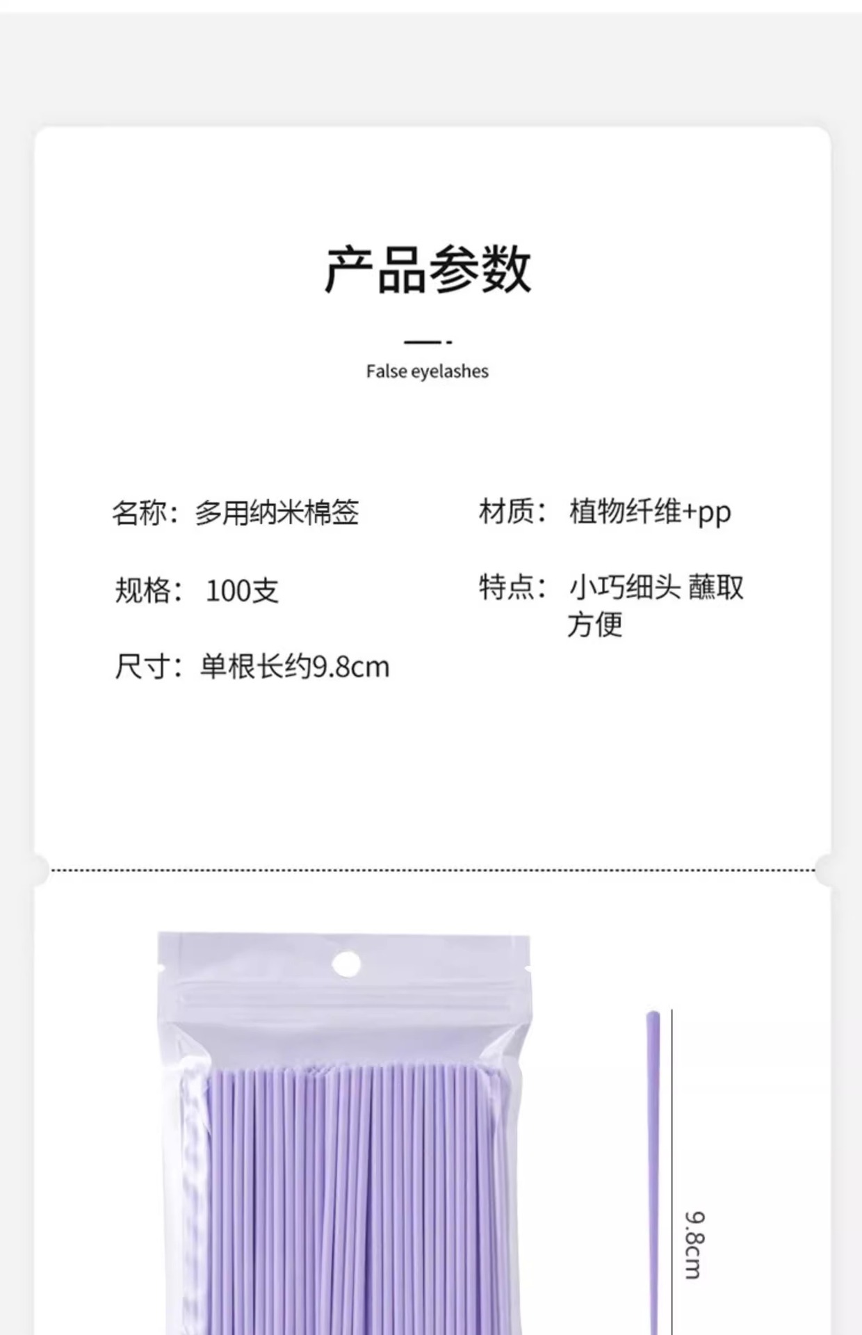 ナノコットン綿棒、細頭、小頭、メイク直し、アイライナー拭き、つけまつげ除去、つけまつげ洗浄棒、タトゥー専用綿棒