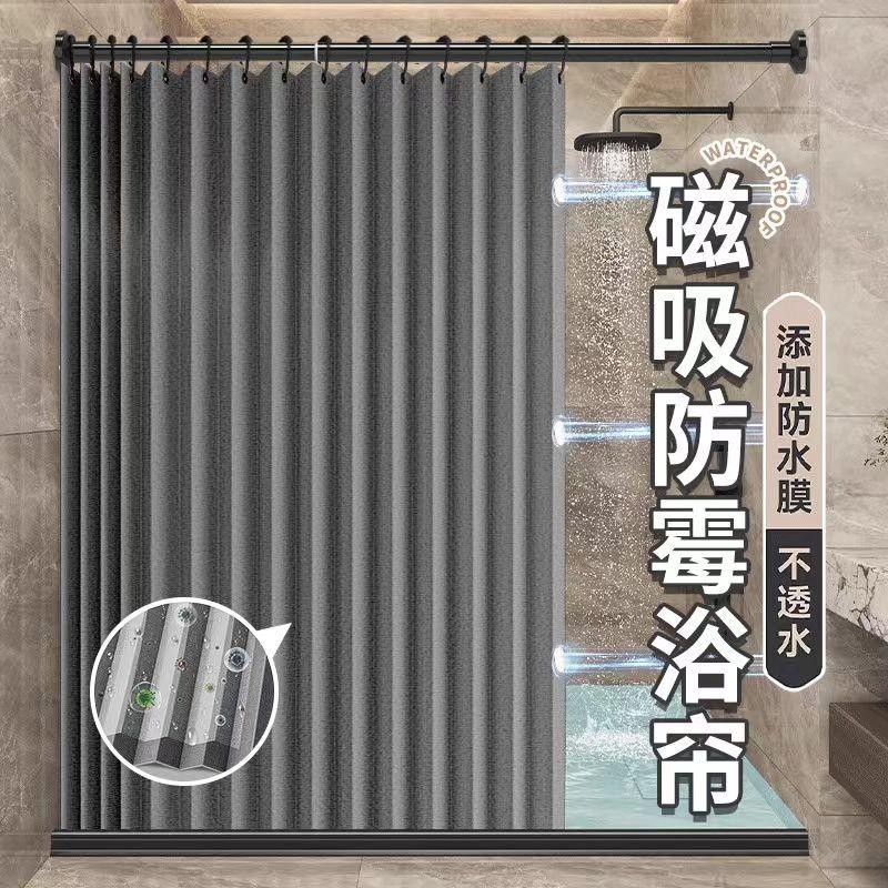 折叠磁吸浴帘浴室防水加厚洗澡隔断帘卫生间隐形卧室挂帘干湿分离