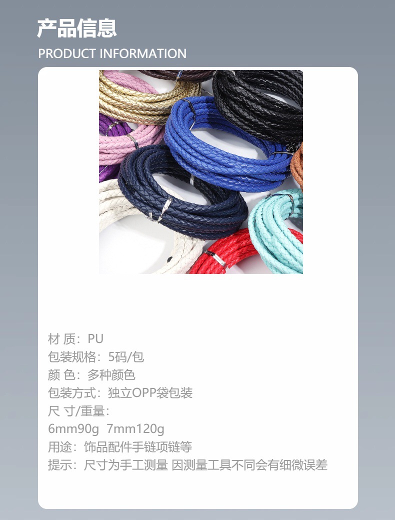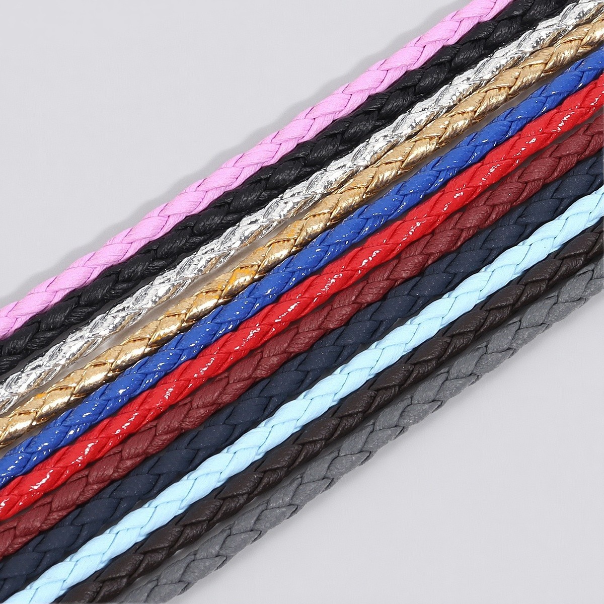 DIY饰品配件彩色项链手链编织PU软皮绳腰链麻花皮绳手工串珠材料