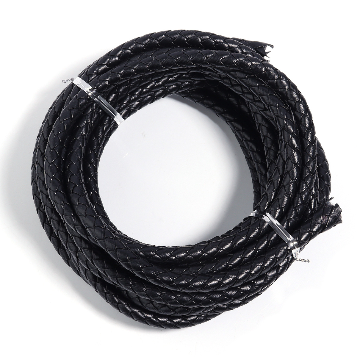 カラー革編み紐レトロ風黒編み革紐PUストラップ付きDIYネックレスハンドロープ