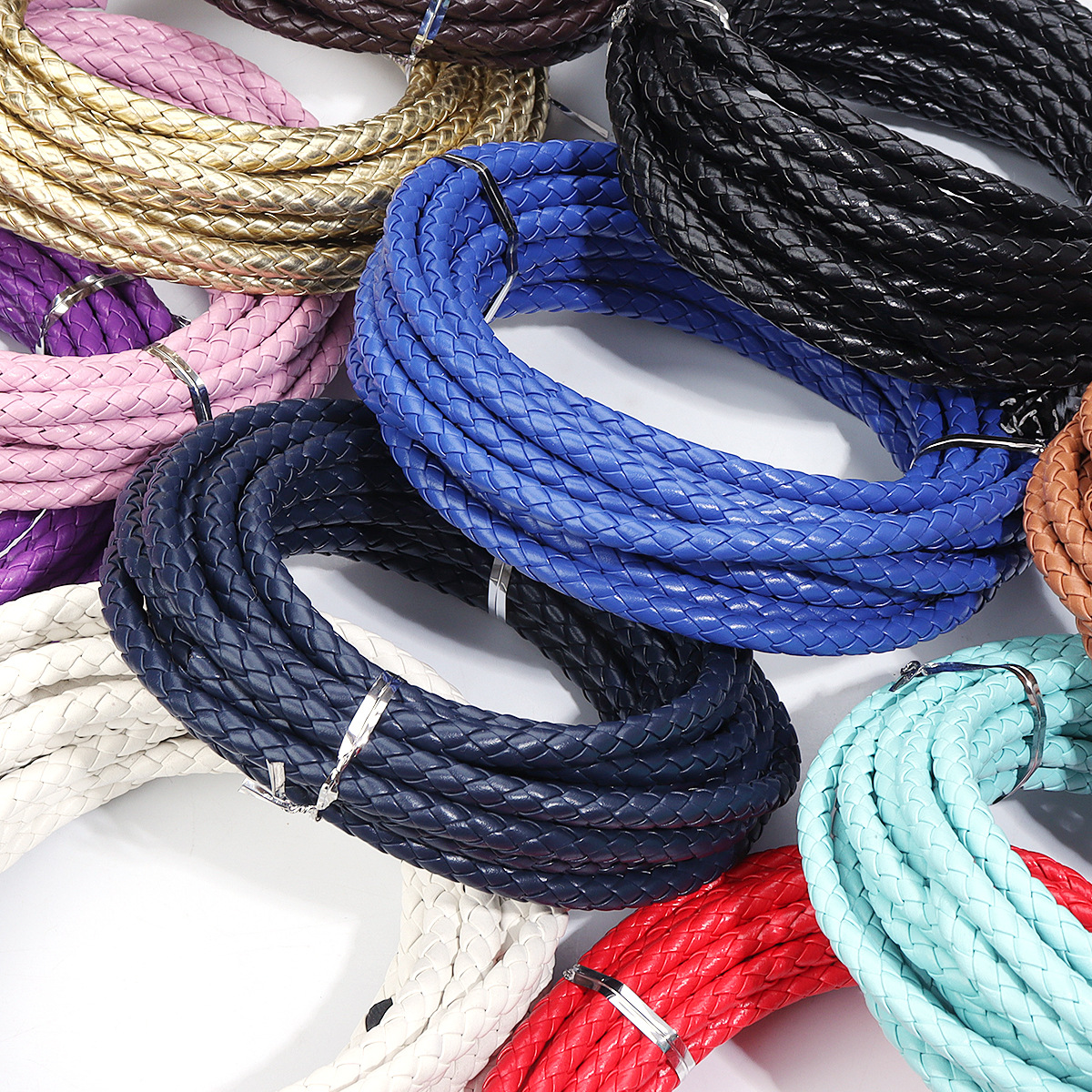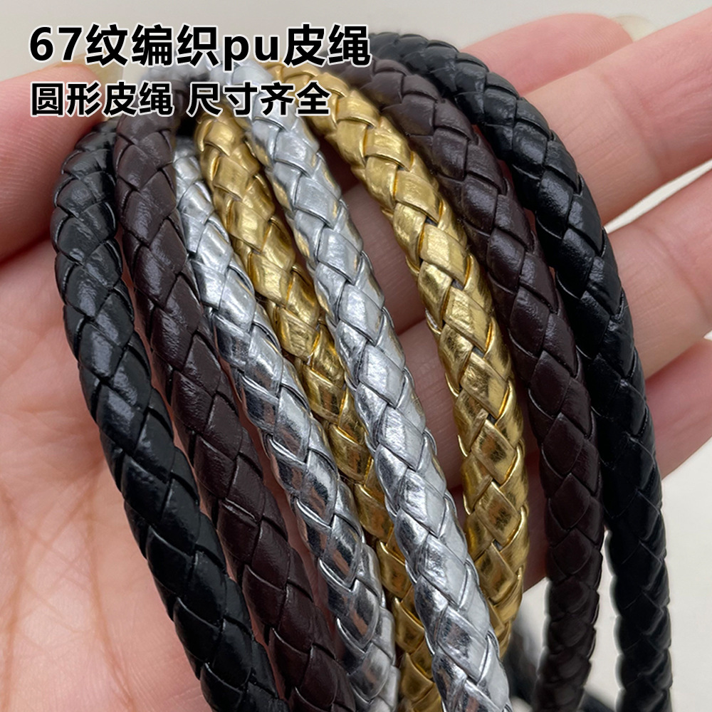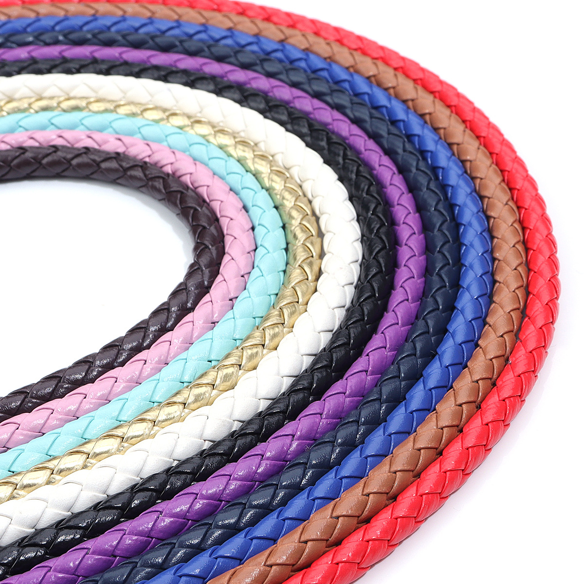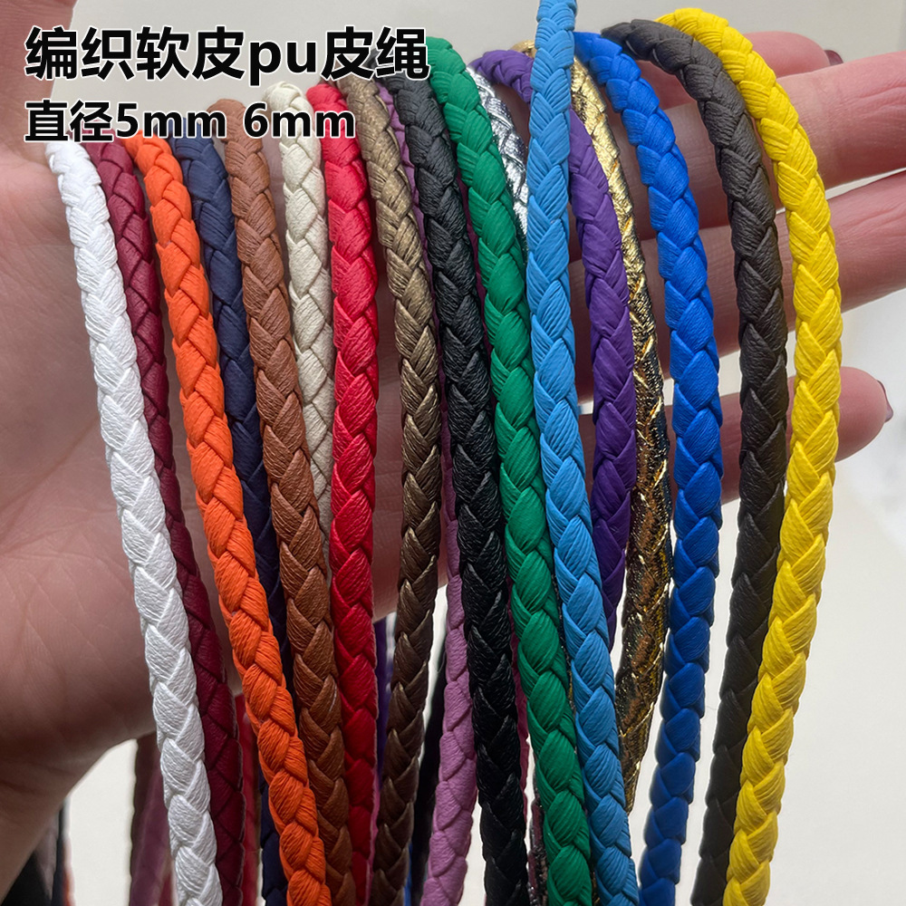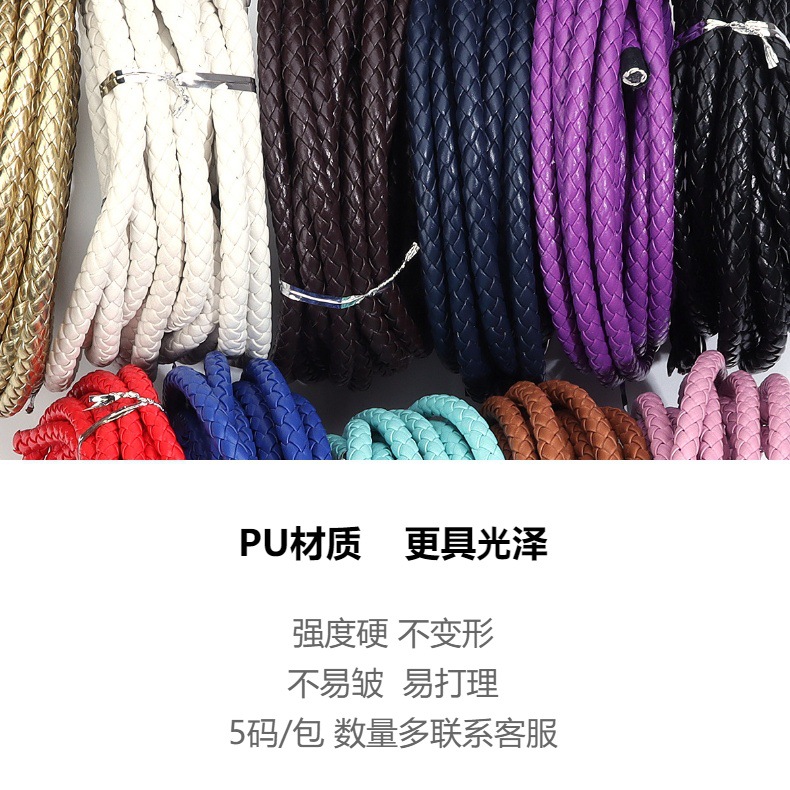 メーカー直販pu革紐ロープ手編み六本5-6mm編み紐丸革紐革編み紐