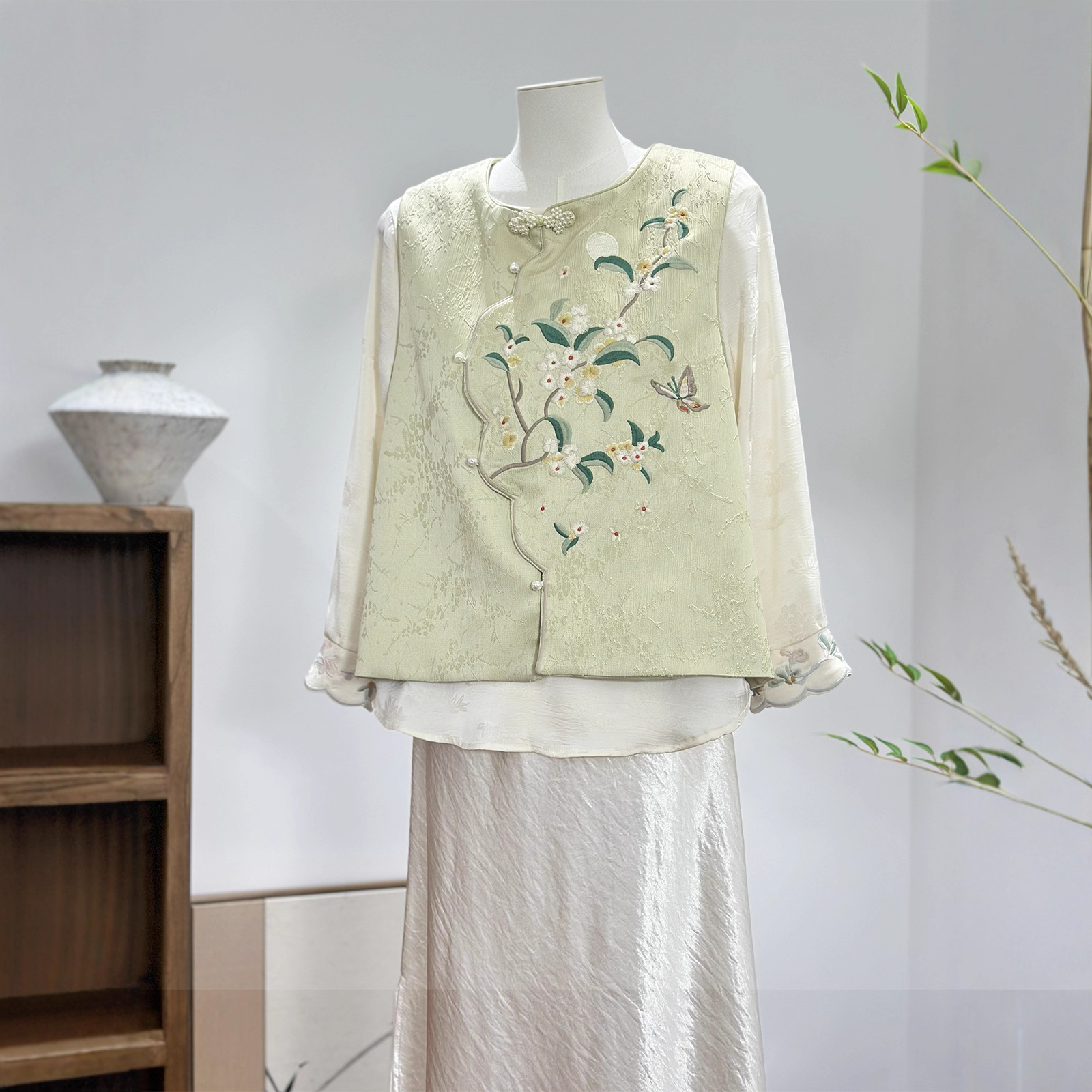 新中式瑞兽榴香提花刺绣马夹女秋季新款百搭国风气质叠穿马甲上衣