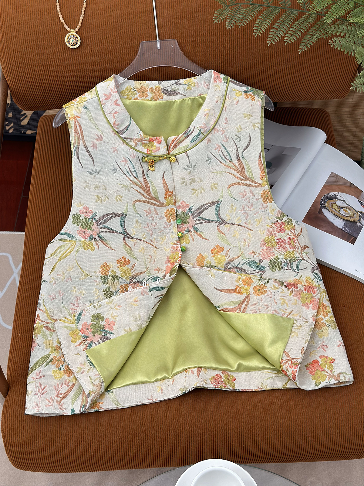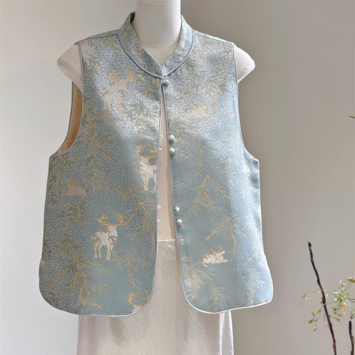新中式国风马甲女重工提花刺绣百搭清新洋气减龄气质显瘦坎肩上衣