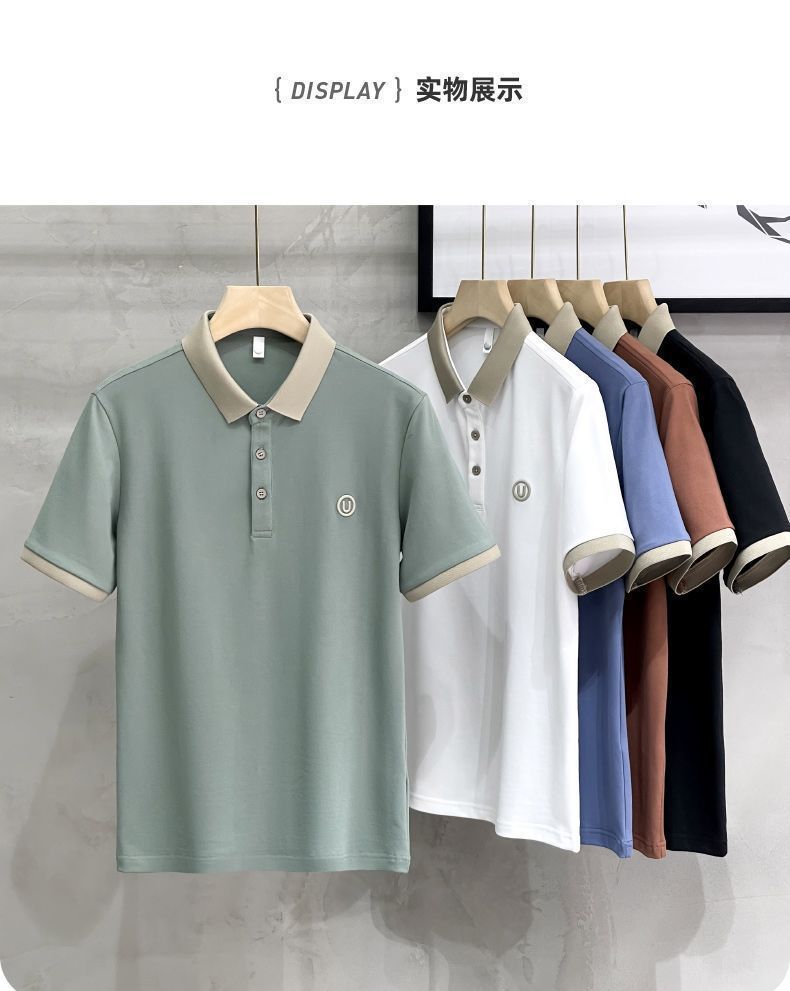 薄手の刺繍ラペルポロシャツメンズ半袖Tシャツ2025新作夏半袖クールでハンサムなメンズスタイル春秋