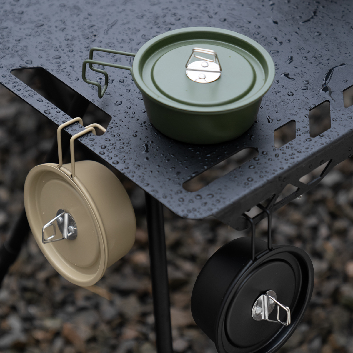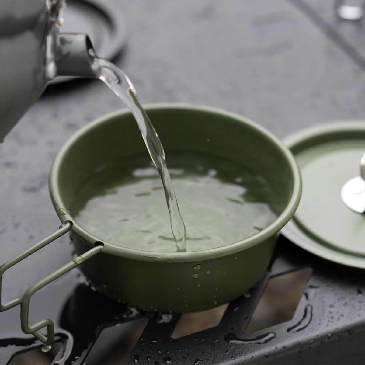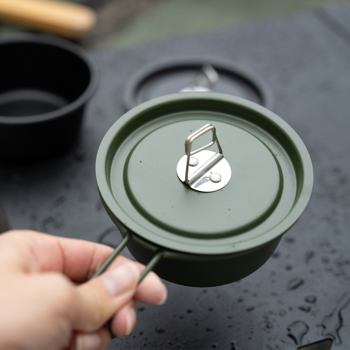 緑の非粘着コーティングされたシラボウルカ式炉キャンプボウル野外キャンプボウル屋外キャンプ装備調理器具セット