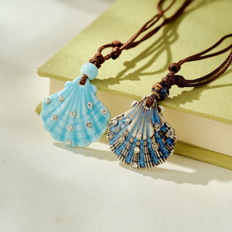 陶磁器のアクセサリーの貝殻のペンダントのネックレスの女性のアクセサリーの古風なペンダントのロープは調整できます。