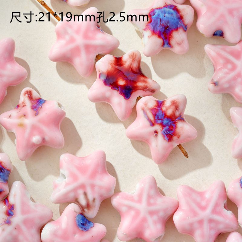 陶磁器海星珠五角星直孔散珠ストラップ材料アクセサリーピンク学生女子編