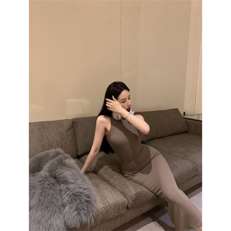 おしゃれな雰囲気のデザイン感のある肩のチョッキのワンピース女性の夏の純欲風のセクシーなスリムなヒップスカート