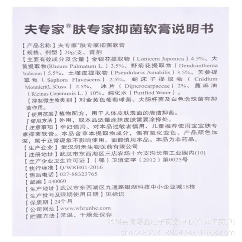 【正品】肤专家抑菌软膏夫专家牌皮肤外用草本舒缓膏武汉润禾