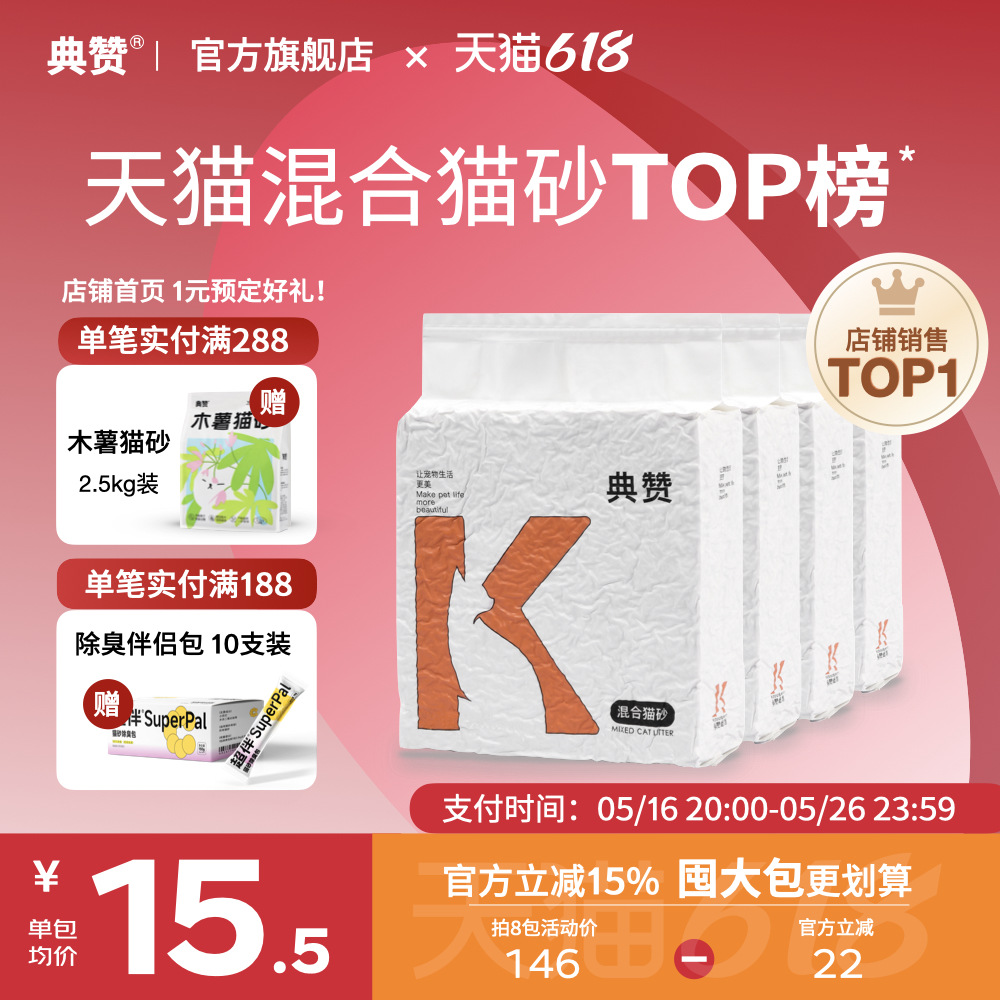 【强除臭】1.5mm典赞豆腐膨润土混合猫砂除臭低尘猫砂包邮20斤