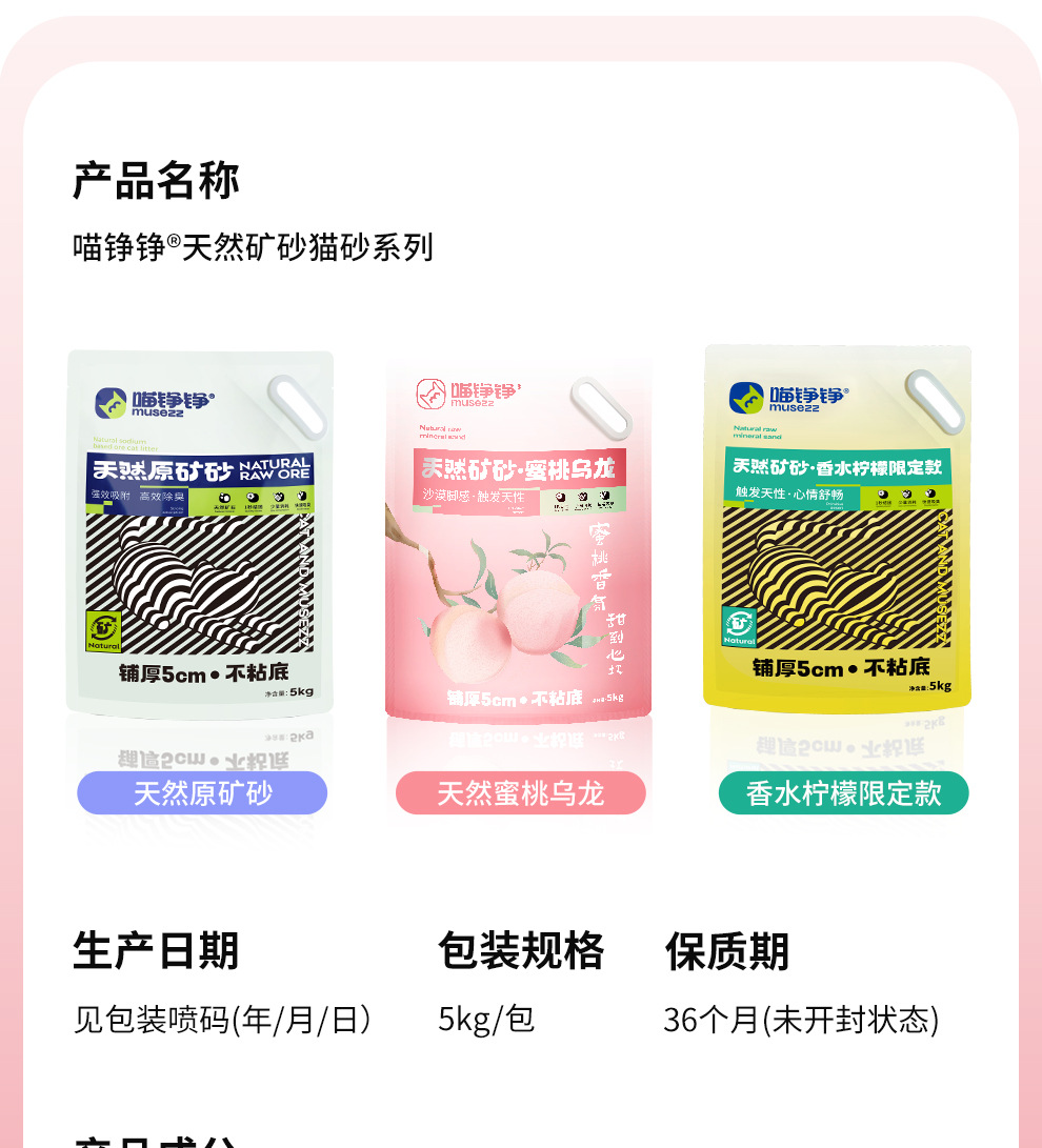包邮喵铮铮天然原矿石猫砂强除臭结团矿砂近无尘约斤