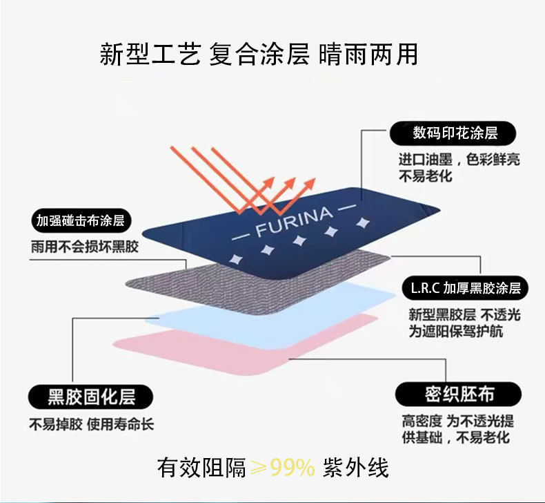秦徹腹筋三つ折り自動大学生黒ゴム日焼け止め紫外線防止傘