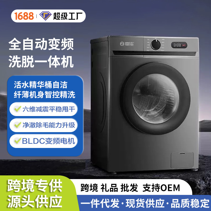 新款跨境滚筒洗衣机家用出租全自动变频超薄大容量高温洗脱一体机