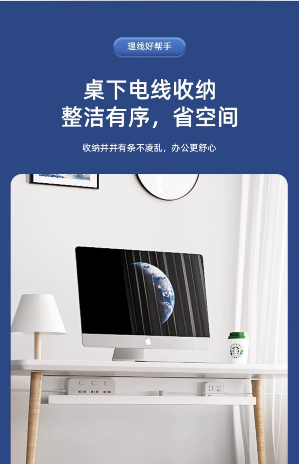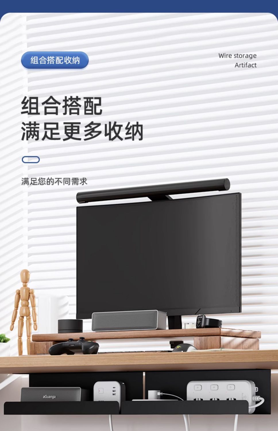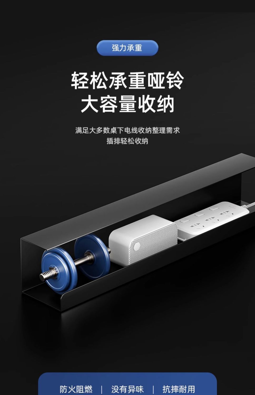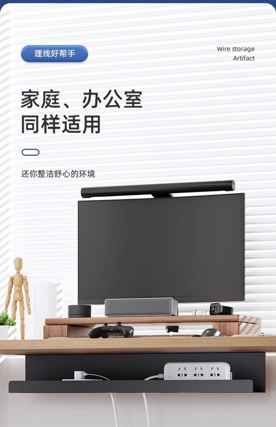 机の下のケーブルラックは穴を開けないで電線を収納します。