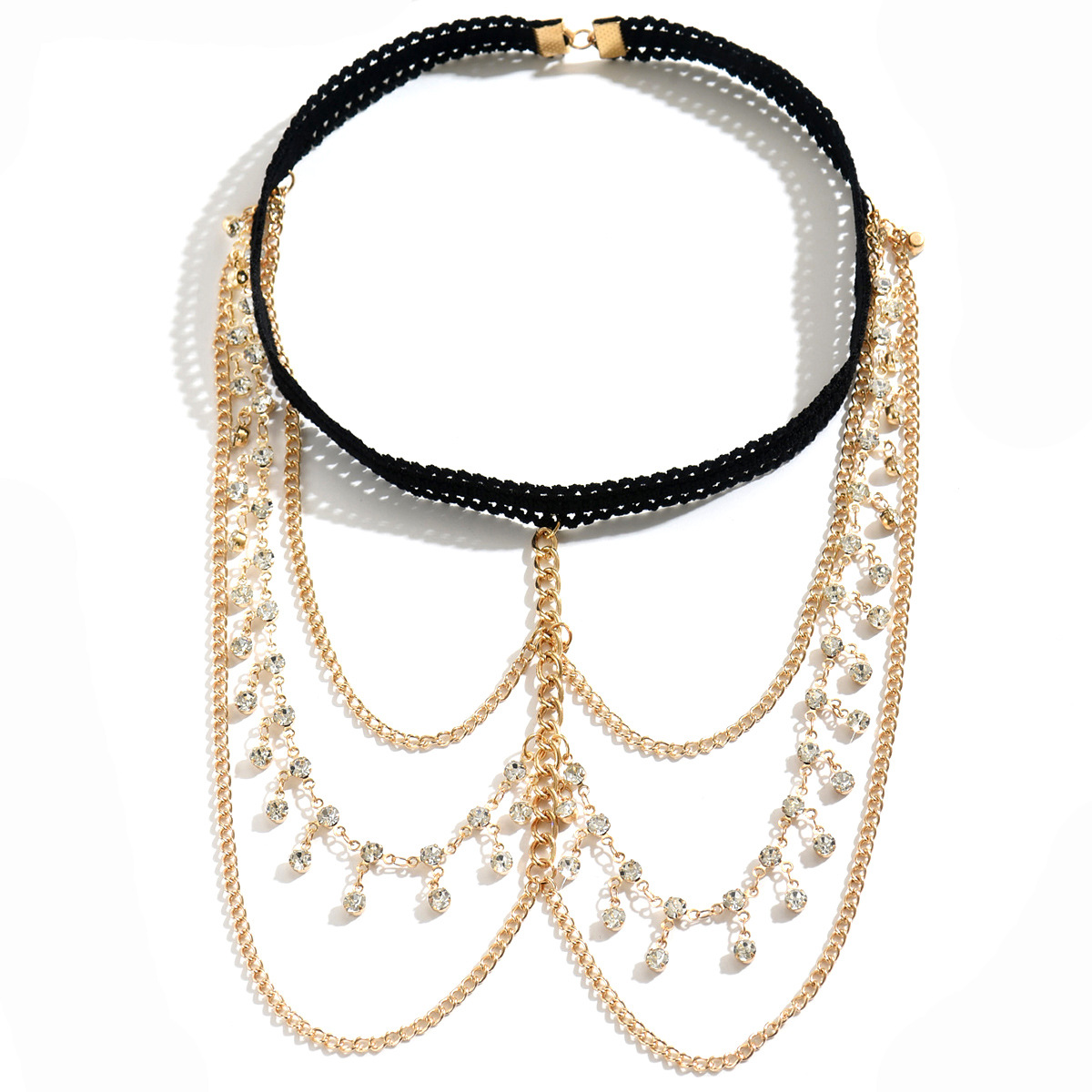 欧米でよく売れている金属チェーンの円環と首環の多層流蘇セクシーボディチェーンdl 0017