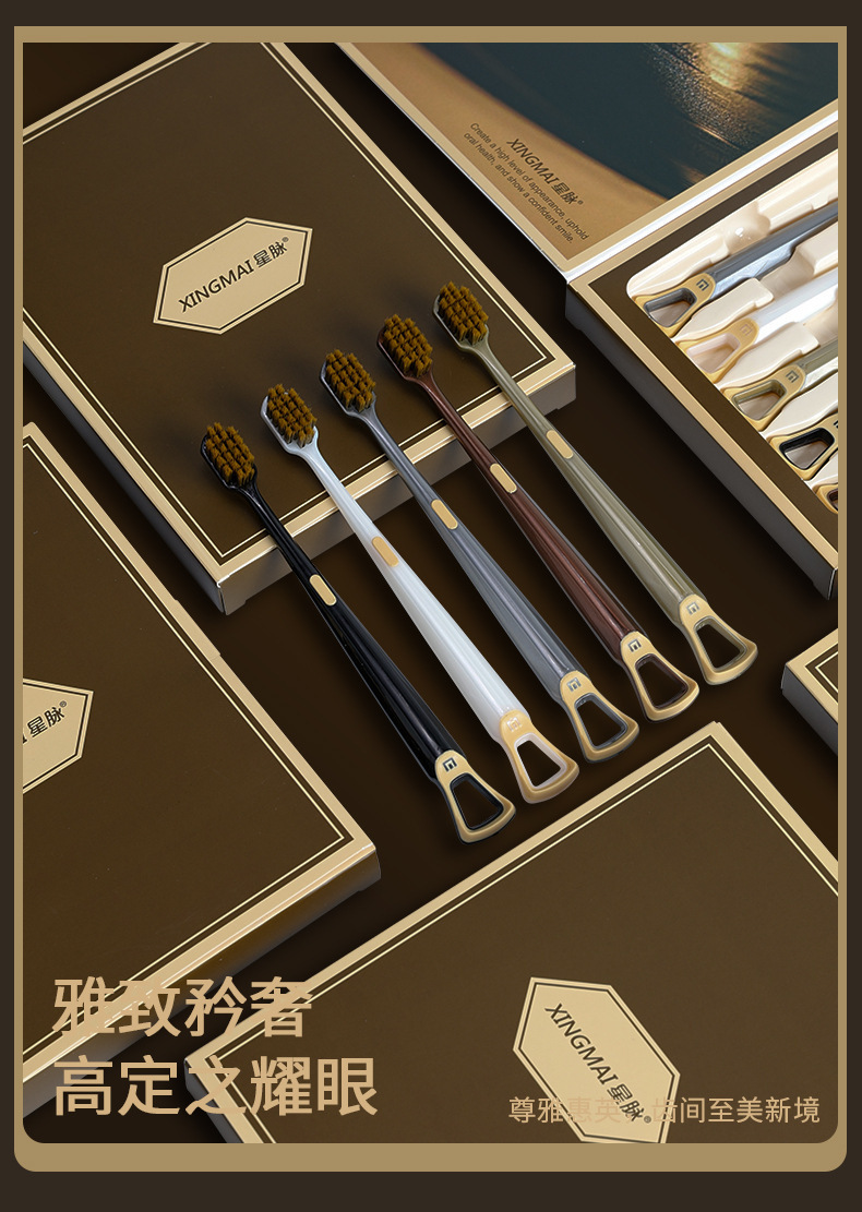 贅沢なギフトボックス5本の舌掻き器万毛歯ブラシ成人家庭用旅行ソフト毛歯ブラシ震え音起爆メーカー