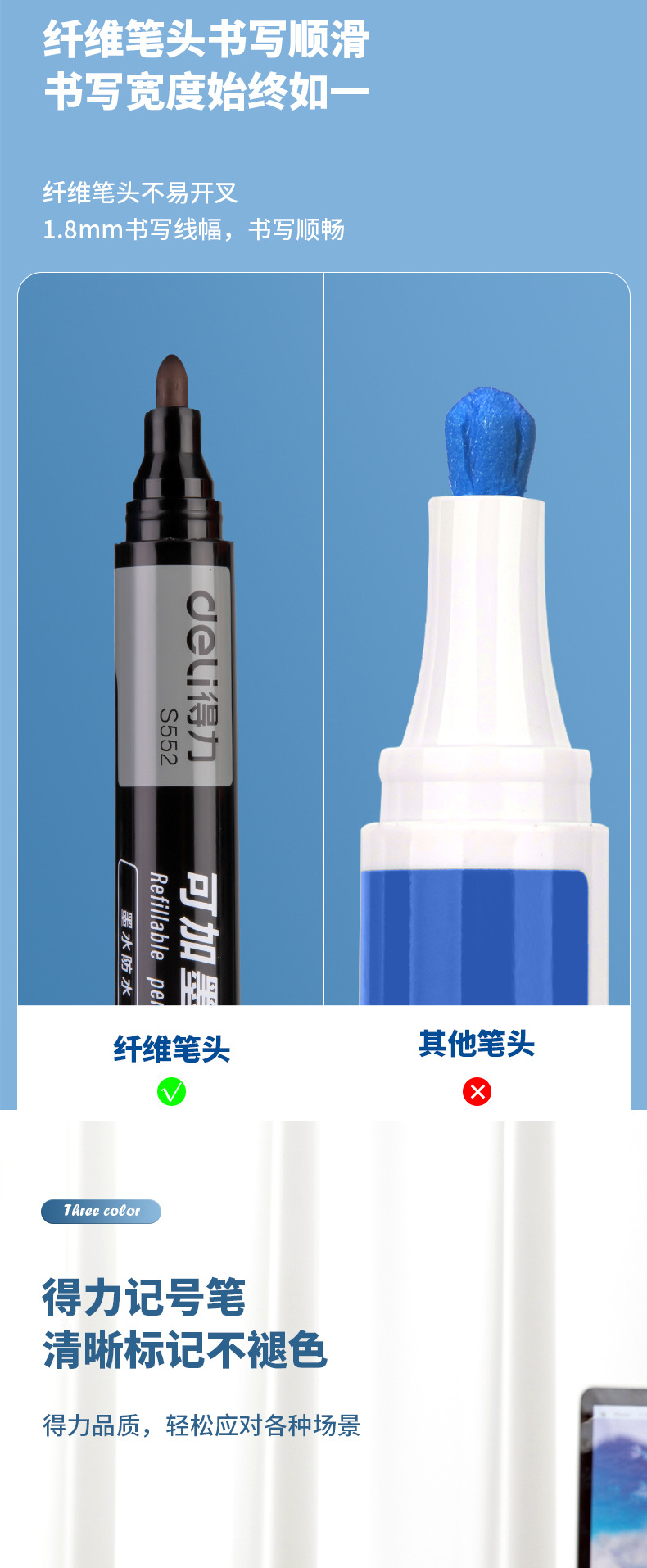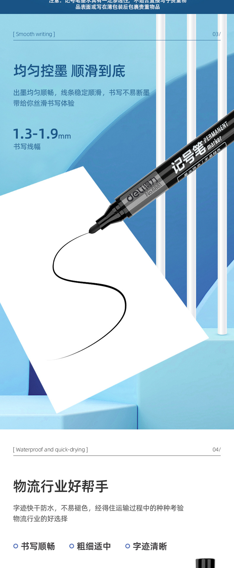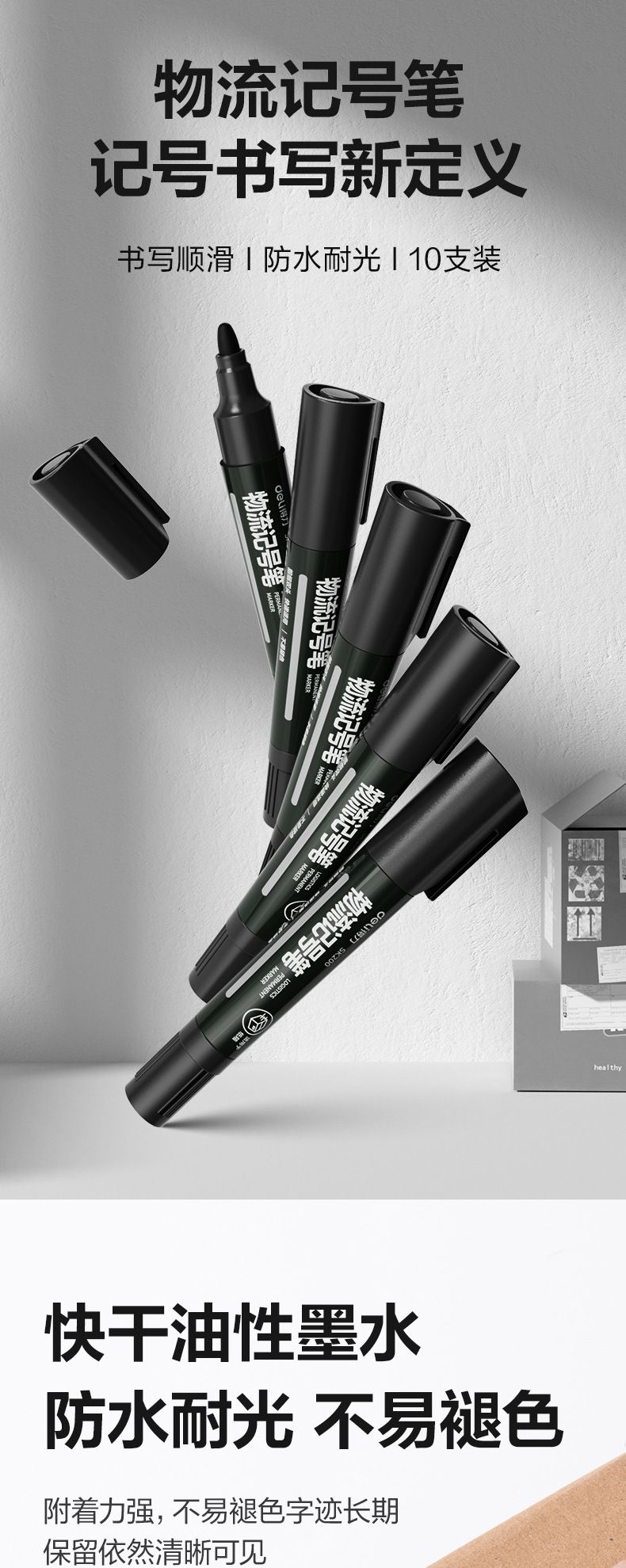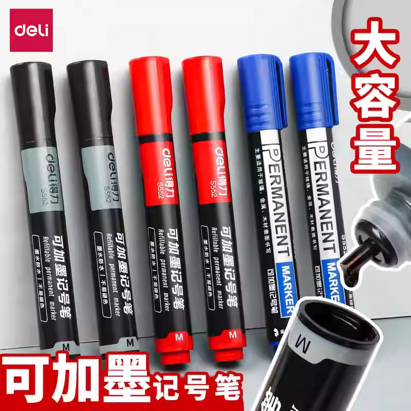 得力记号笔可加墨快干防水油性大头笔物流快递不掉色标记笔马克笔