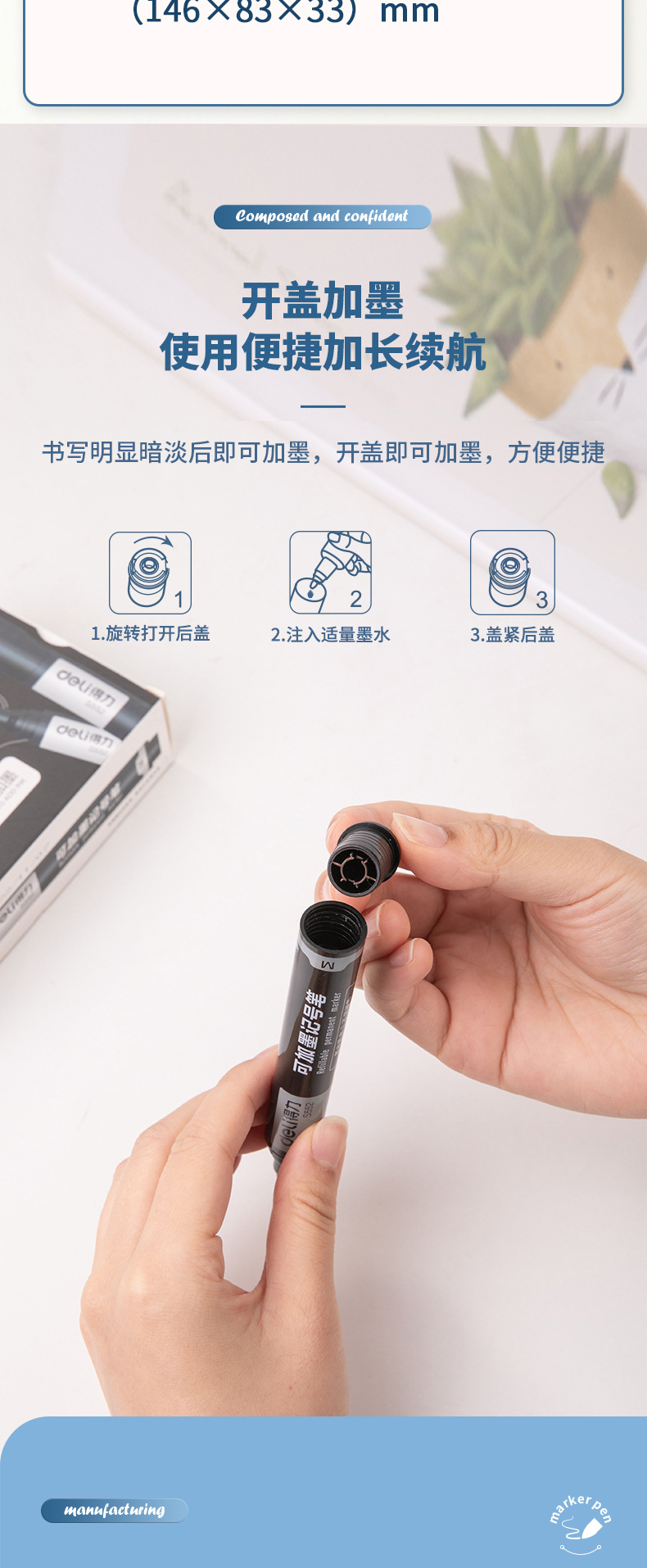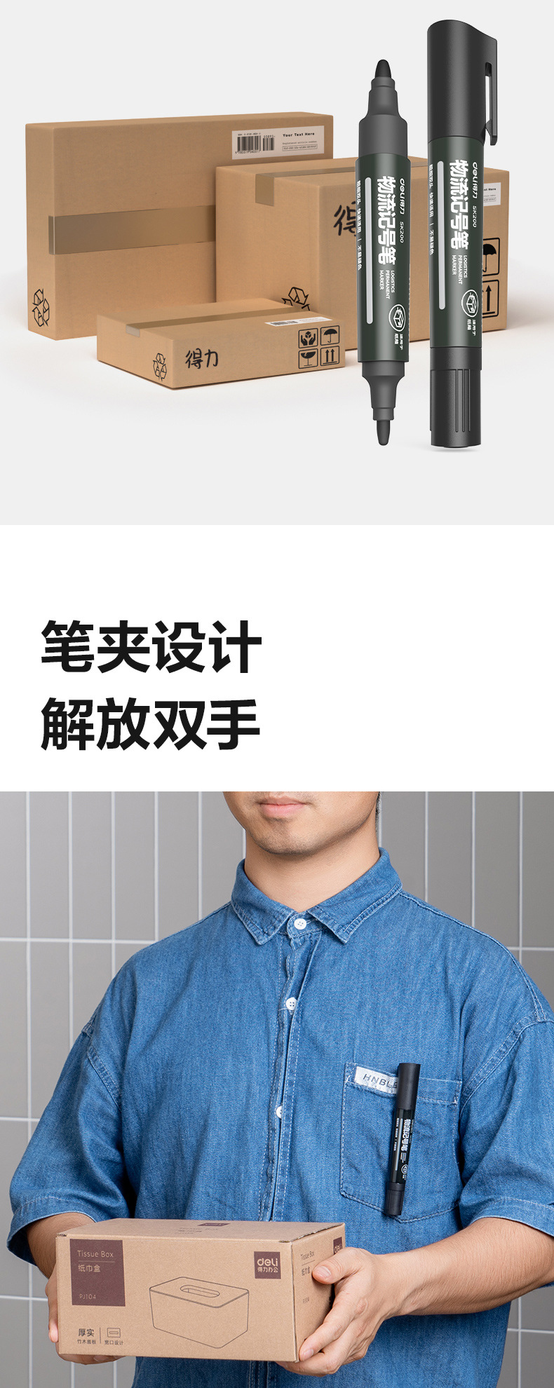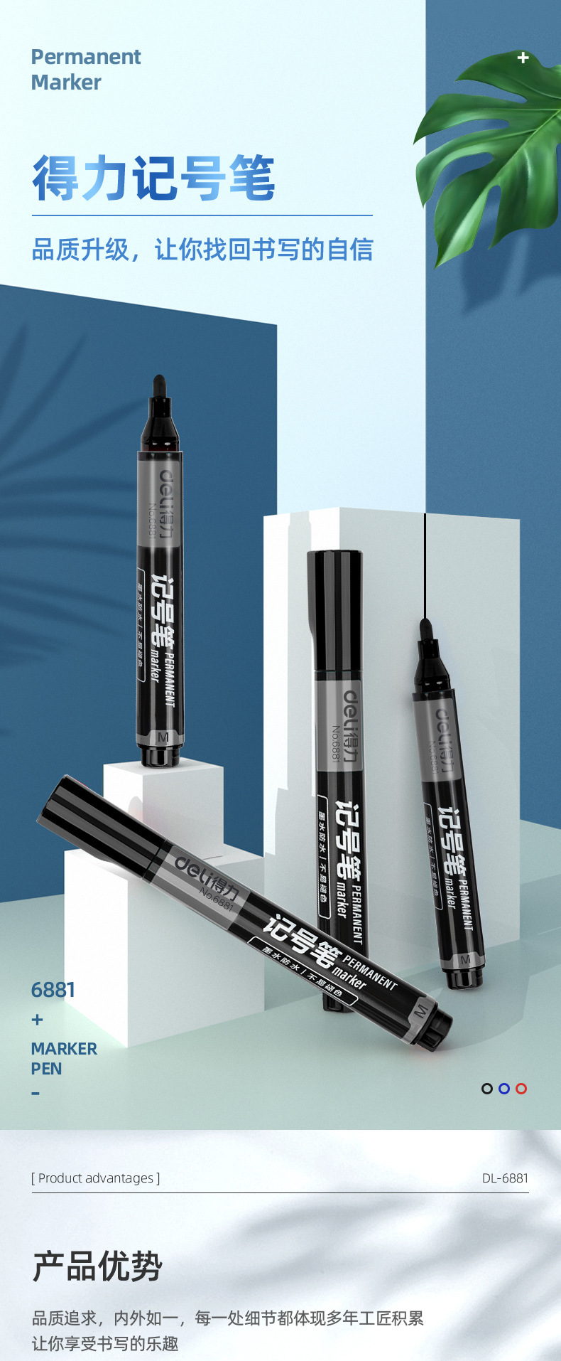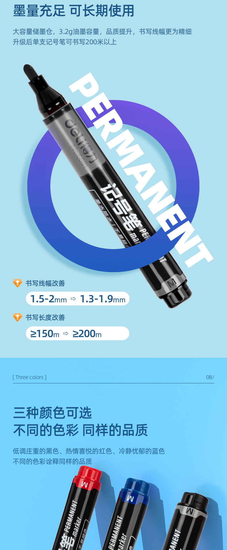 得力记号笔可加墨快干防水油性大头笔物流快递不掉色标记笔马克笔