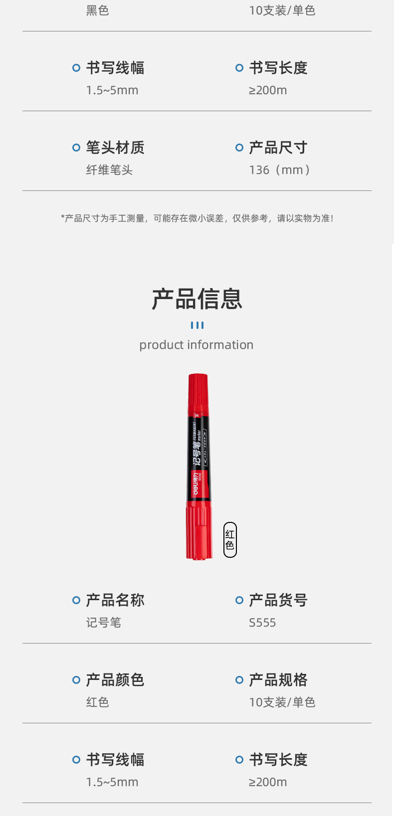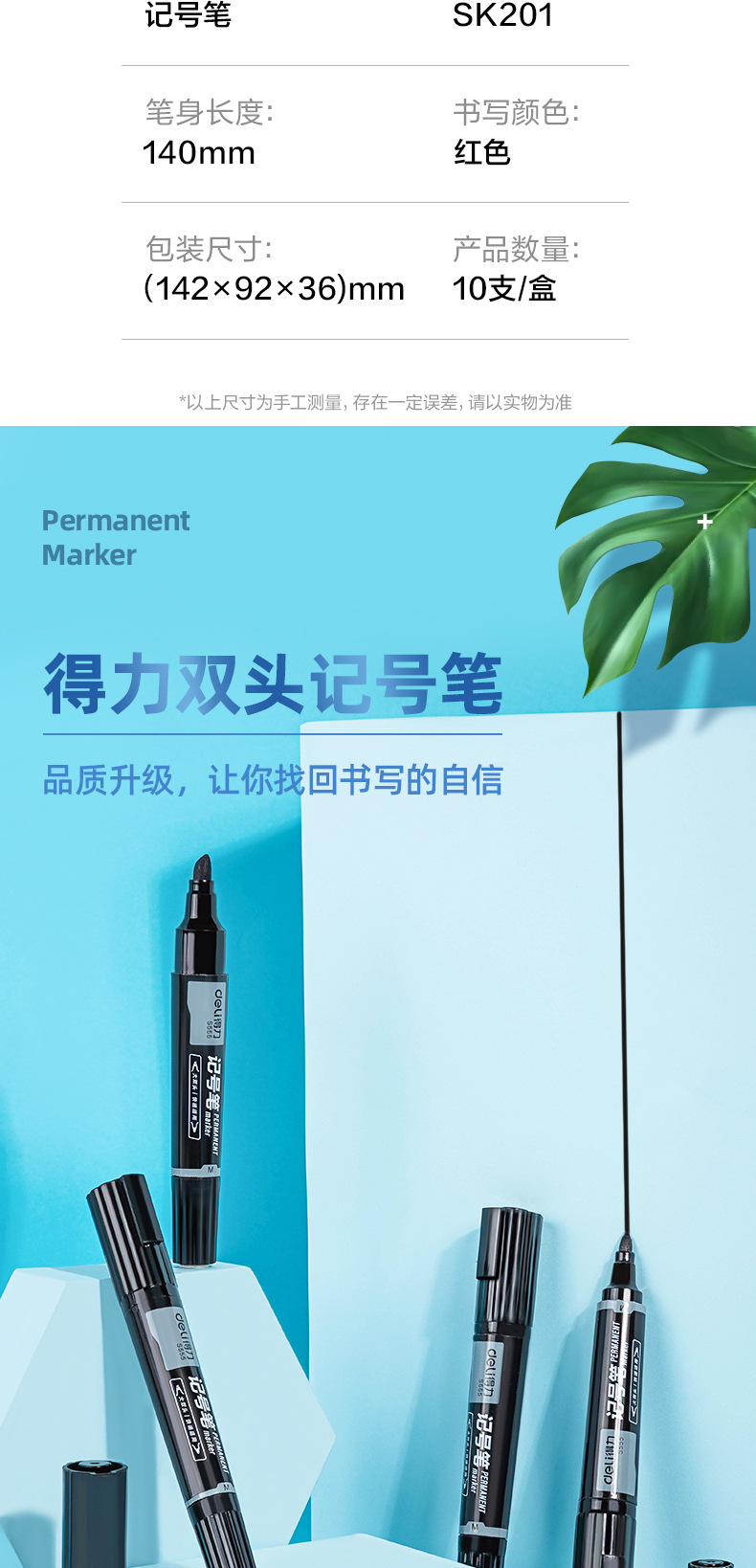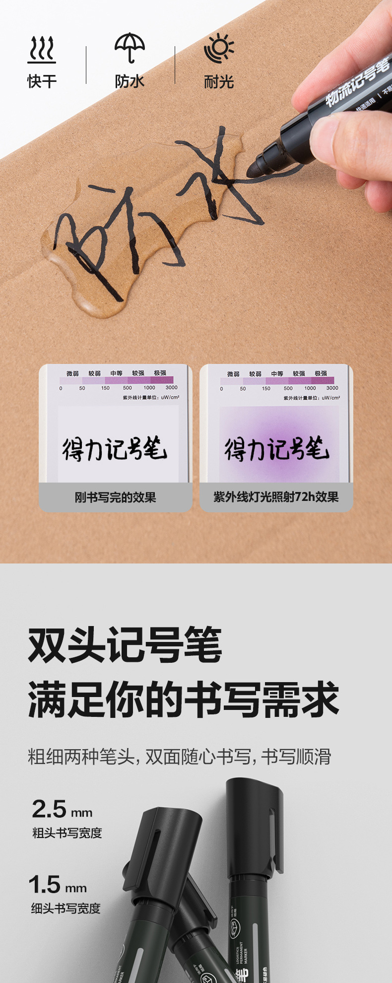 得力记号笔油性黑色红色记号笔粗防水不掉色速干大头双头快递工地