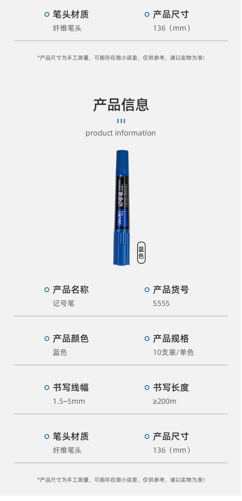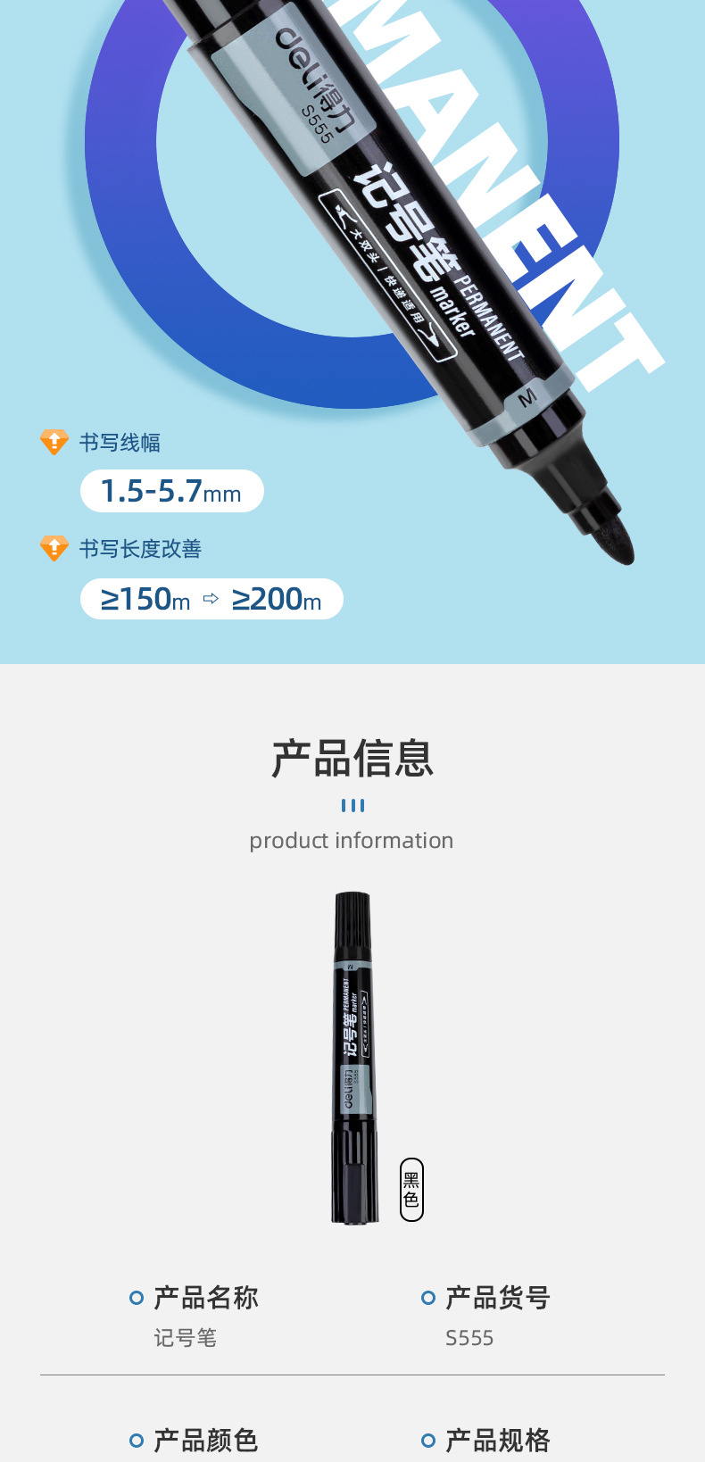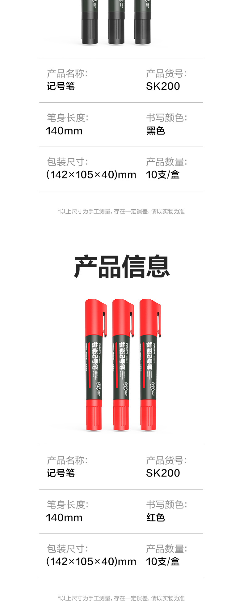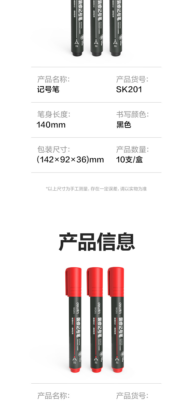 得力记号笔油性黑色红色记号笔粗防水不掉色速干大头双头快递工地