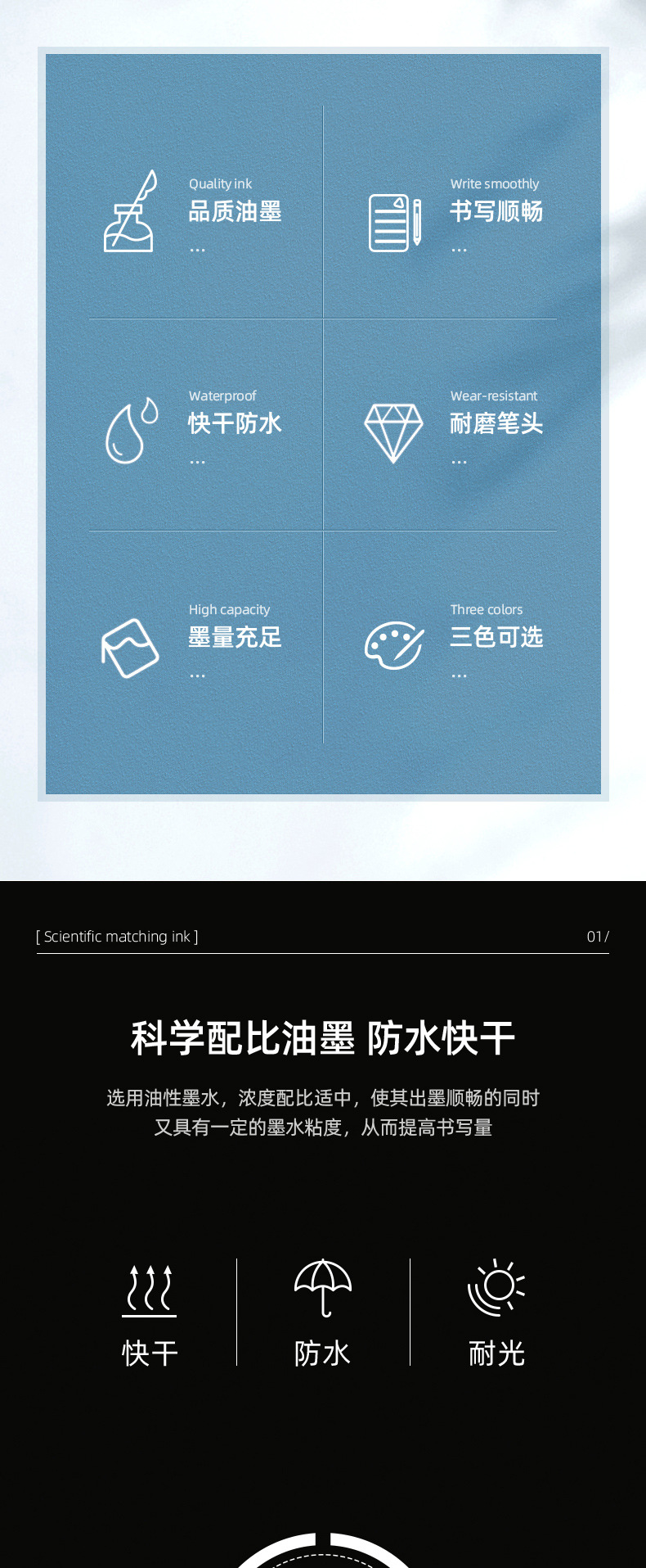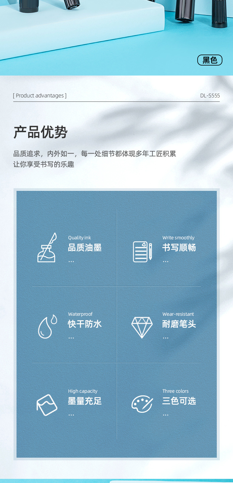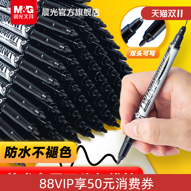 晨MG光油性记号笔黑色勾线防水不掉色彩色学生用美术专用双头不可