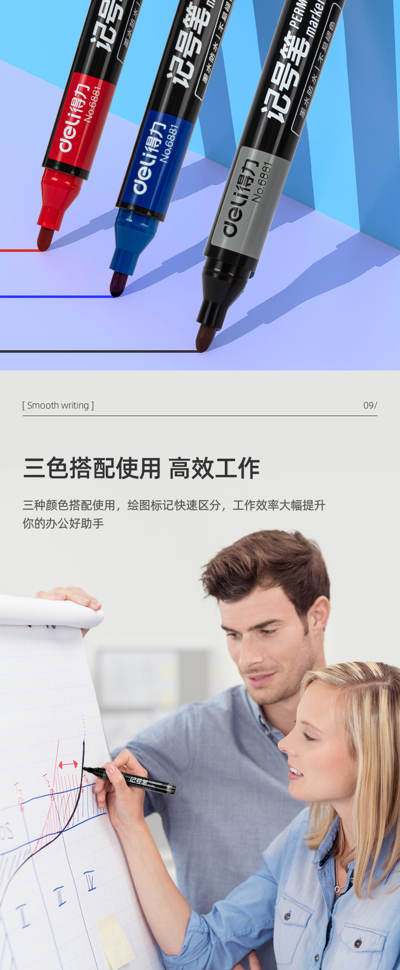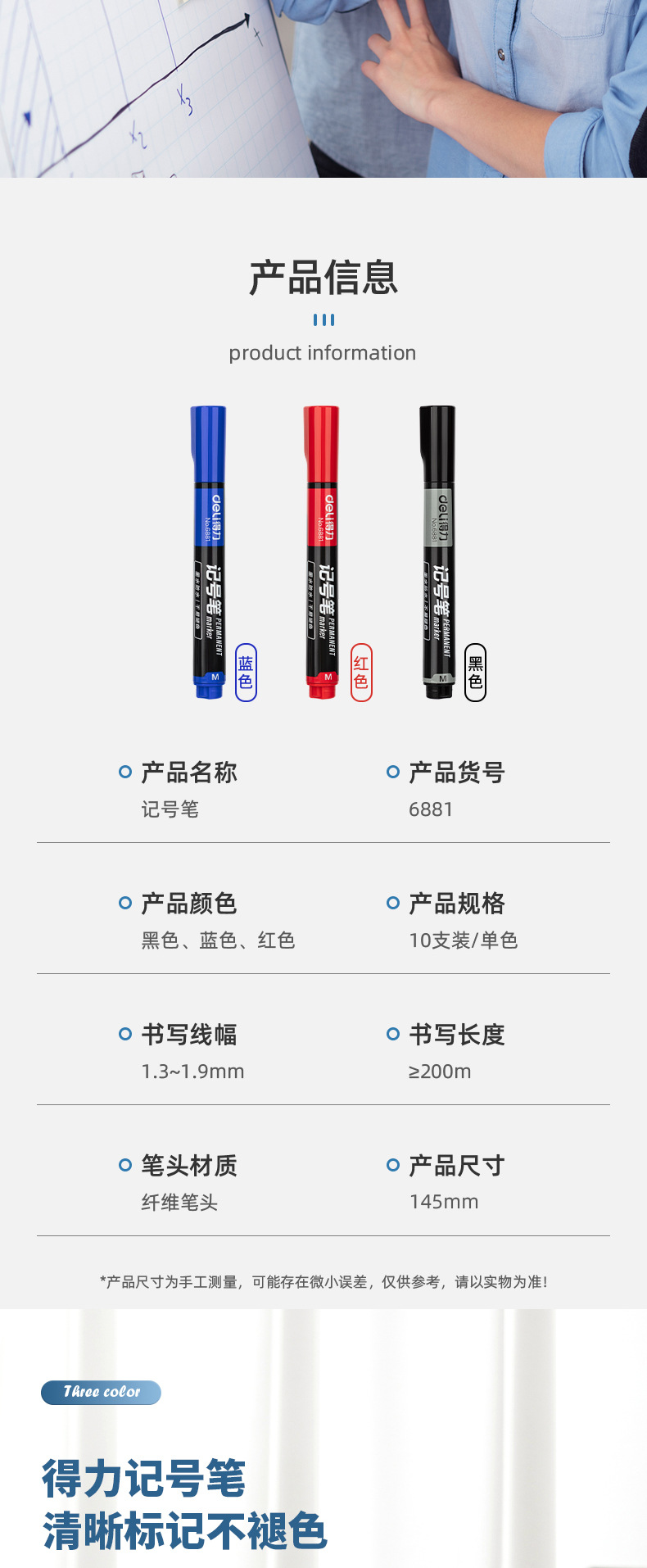 デリ 6817 ホワイトボードペン物流ペン赤青黒ホワイトボードペン消去可能なペン事務用品卸売