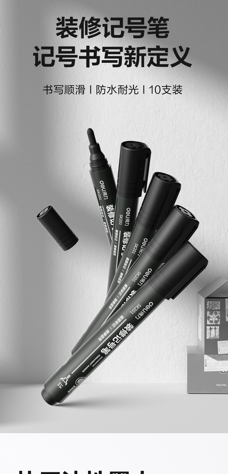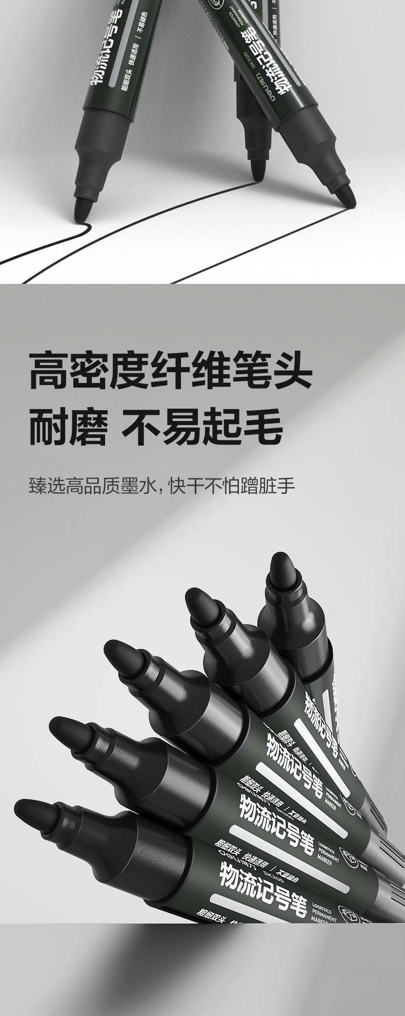 得力记号笔黑色粗头大头笔油性墨水勾线笔马克笔快递标记笔加粗