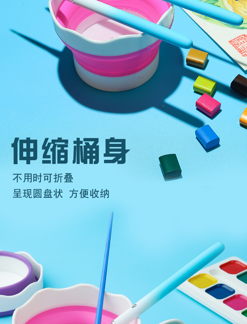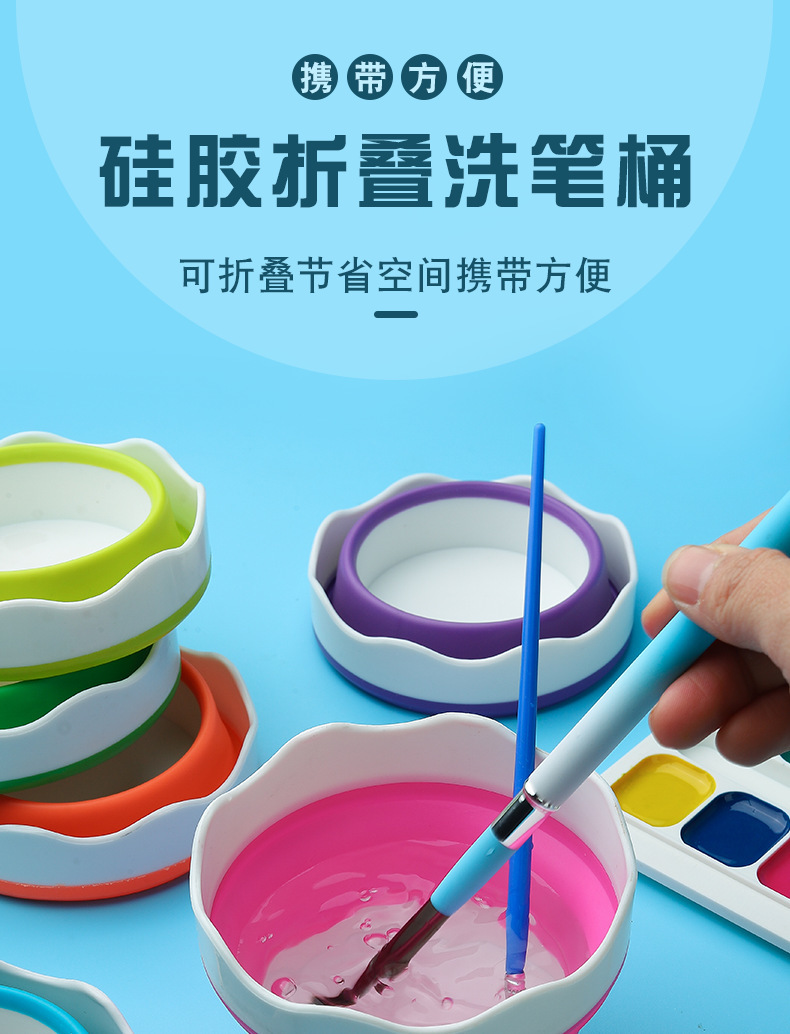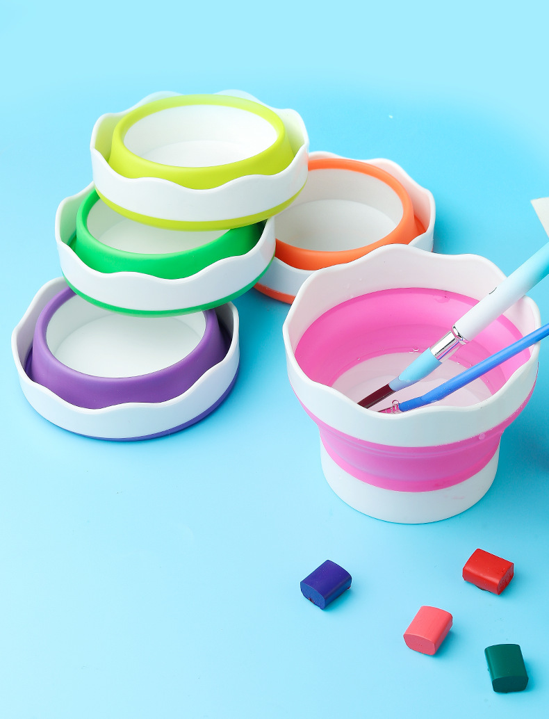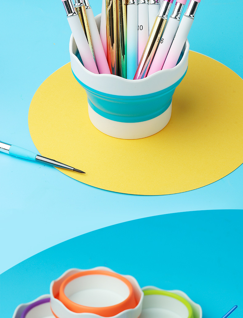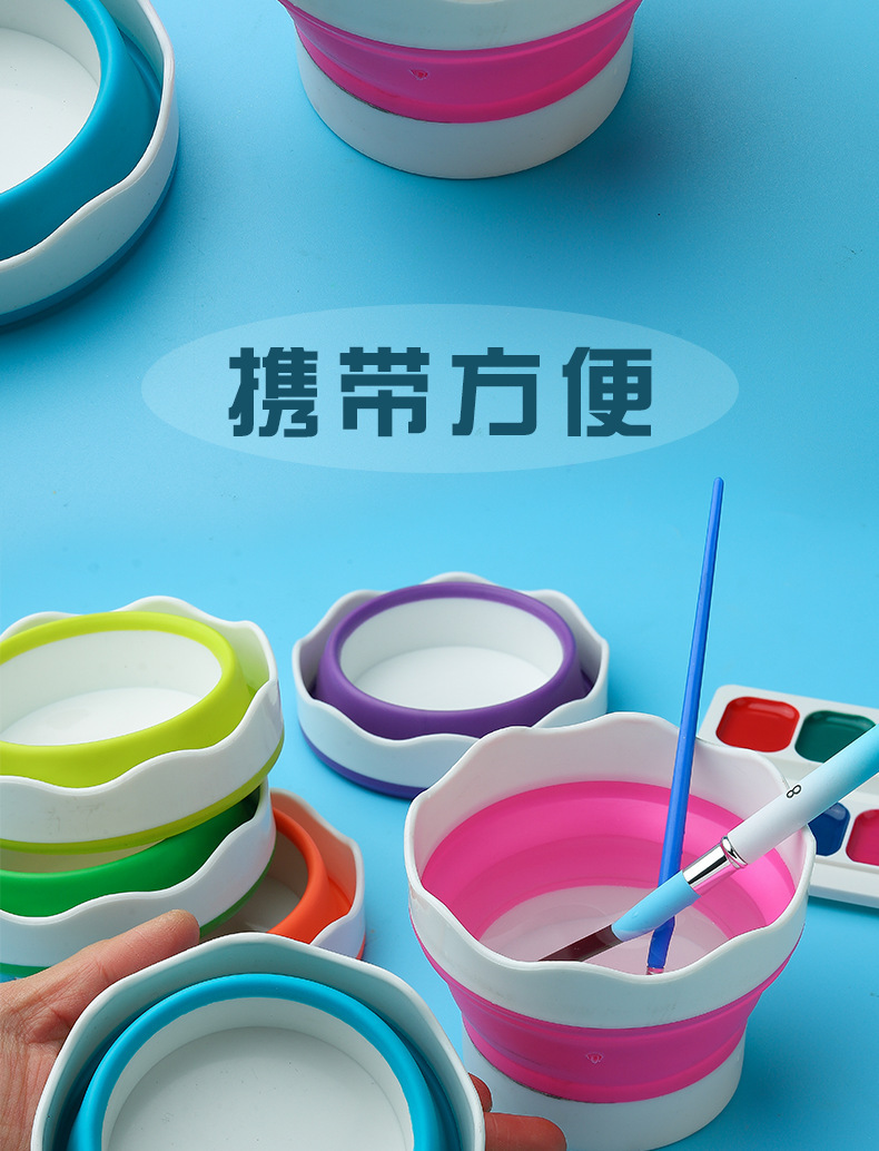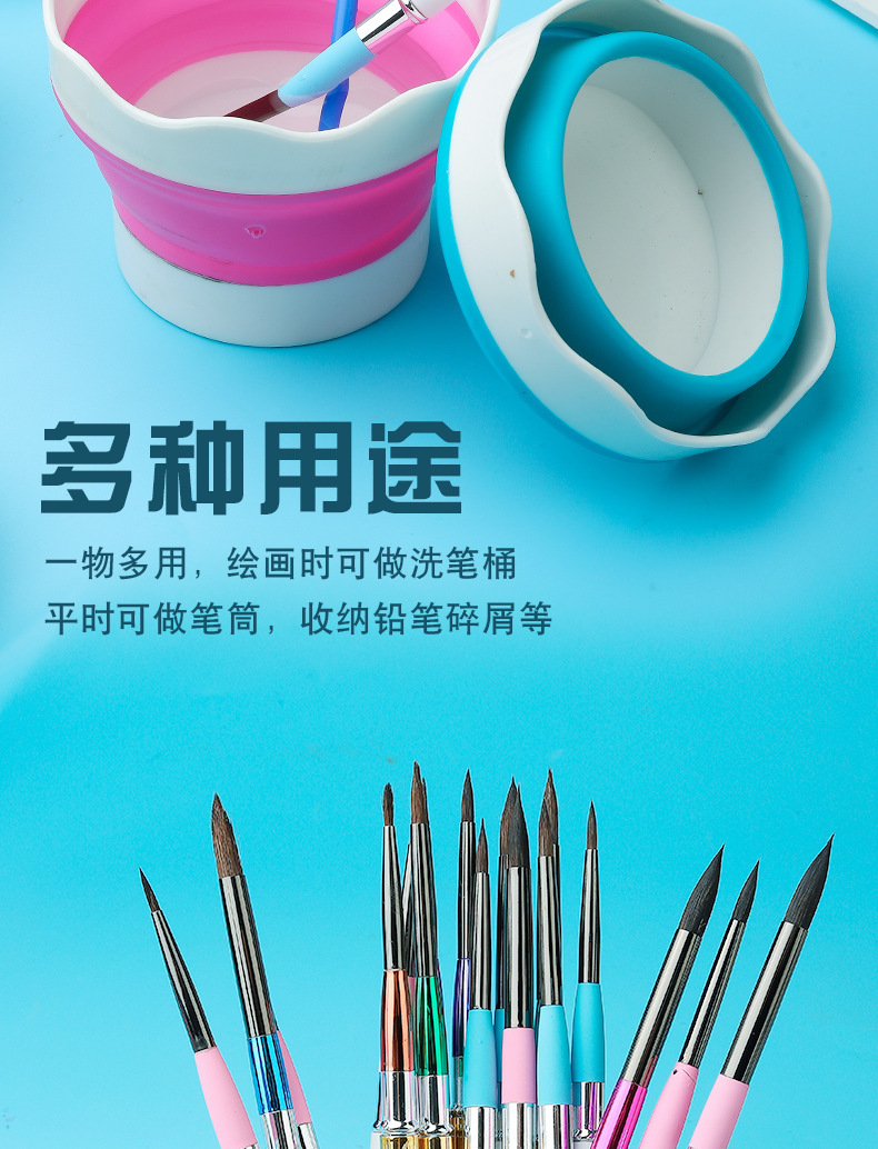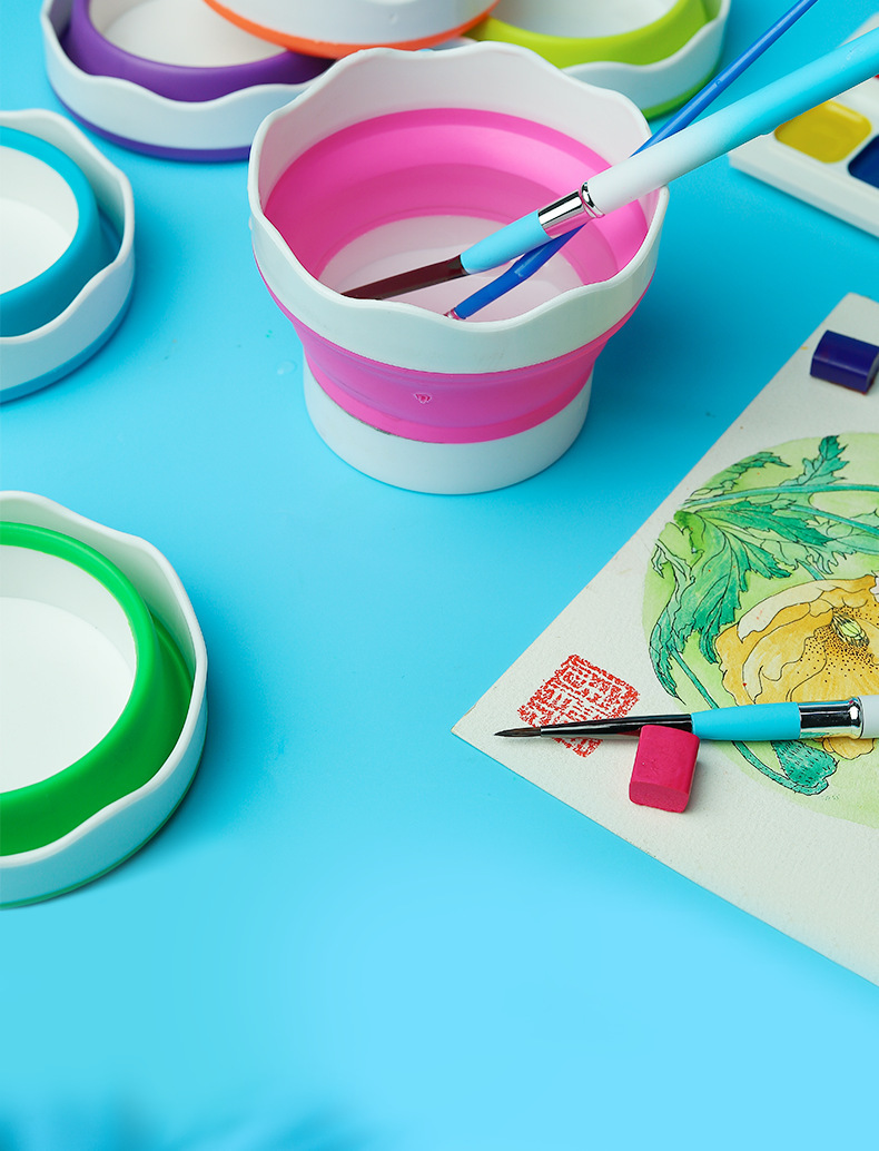 美術シリカゲル折り畳みバケツ洗筆筒多機能ペン洗筆桶水彩釣り携帯ブラシ筆筒