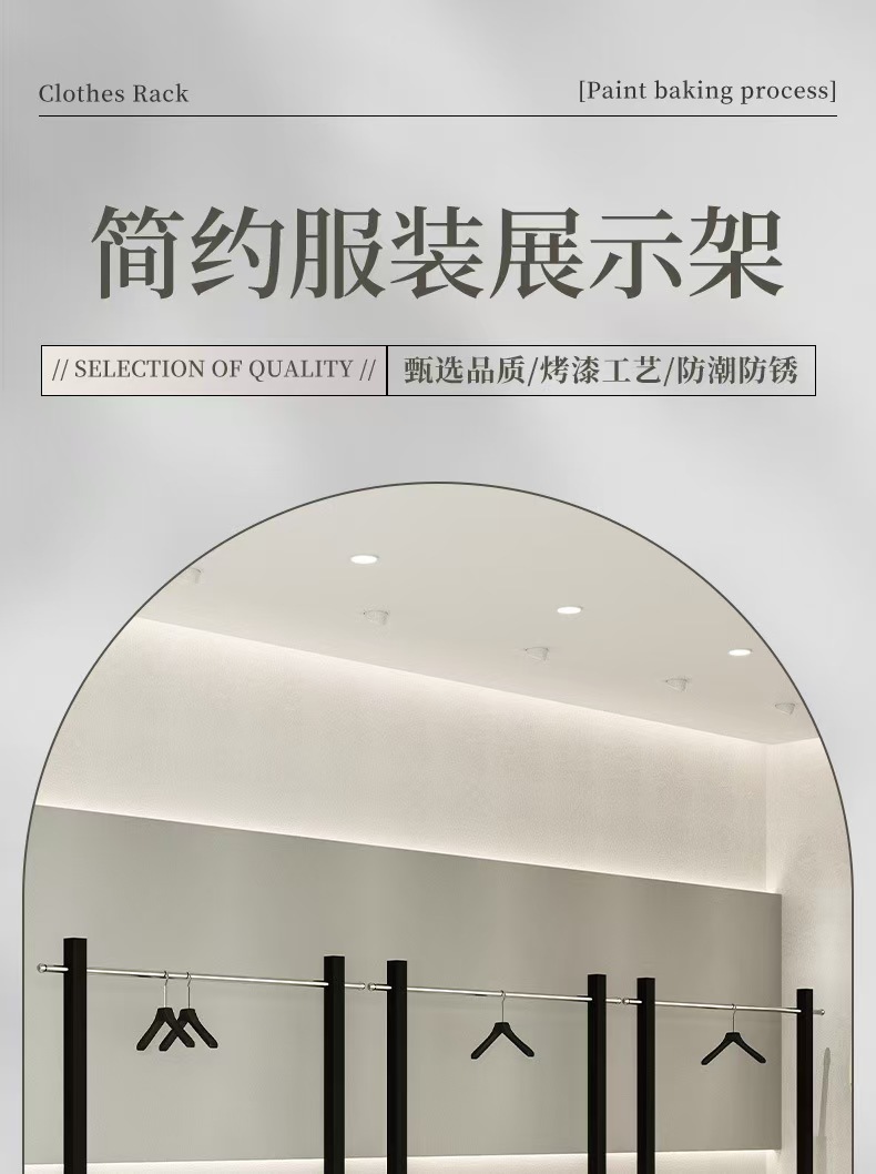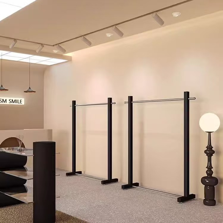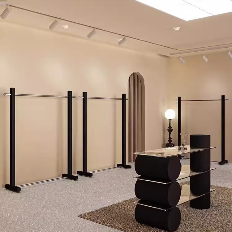 洋服店展示棚ステンレス中島棚鉄芸黒ハンガー服装陳列道具シンプル床置き棚